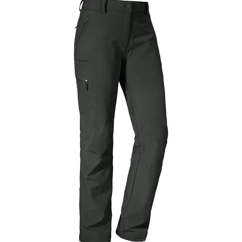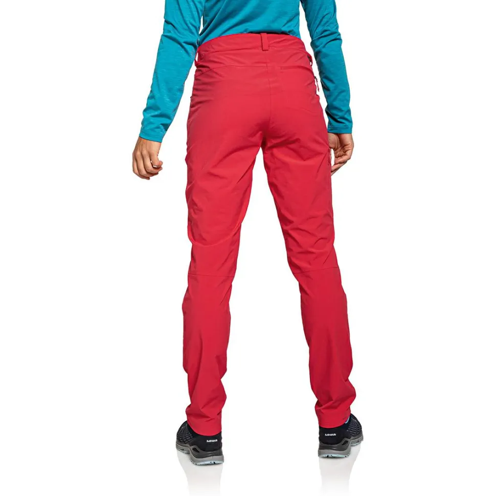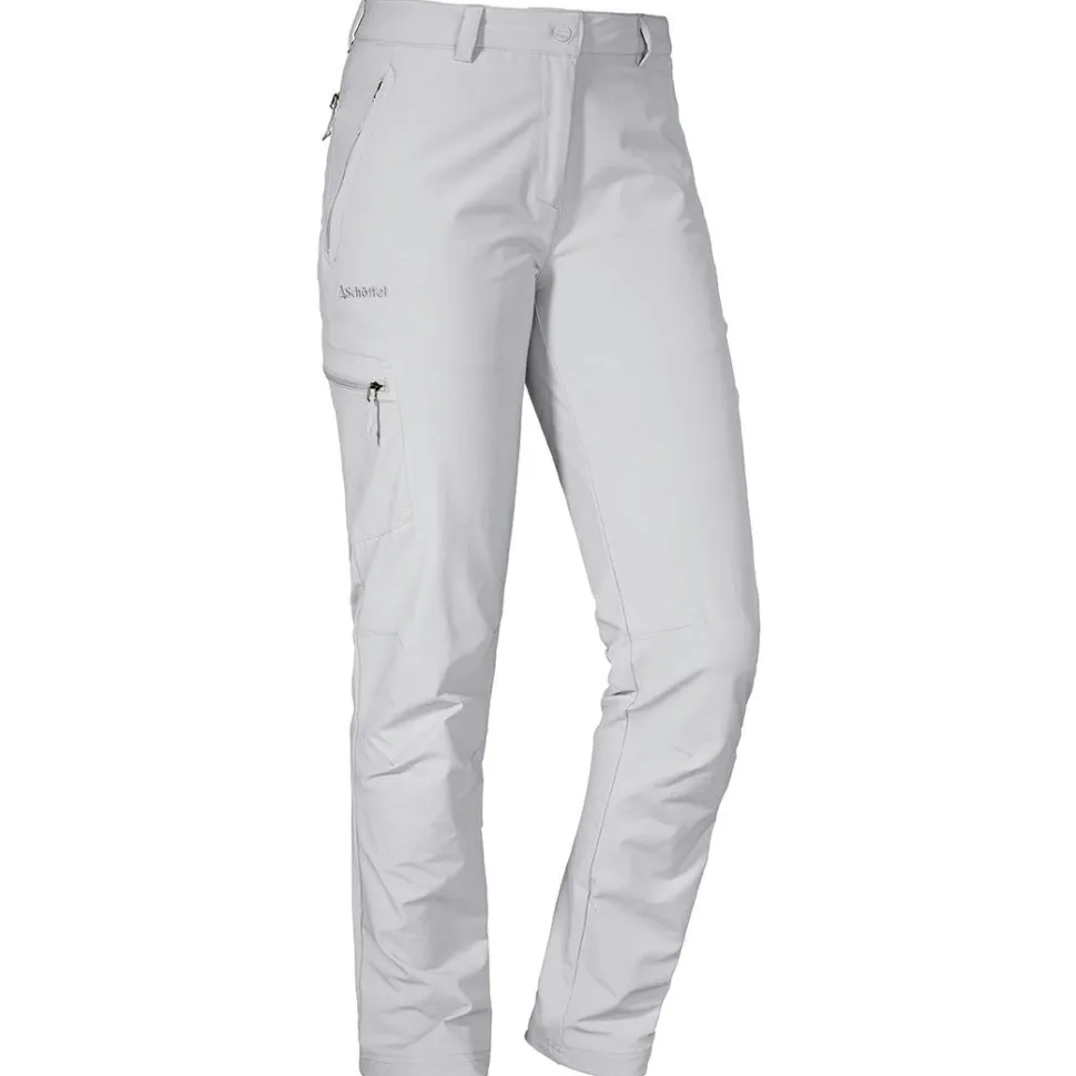 Die Women’s Pants Ascona von Schöffel ist eine bequeme Trekkinghose, die zuverlässige Performance für Wander- und Bergtouren bietet! Als Außenmaterial verwendet die Hose einen robusten Vier-Wege-Stretch aus Polyamid und Elasthan, der ihr ein äußerst geschmeidiges Tragegefühl verleiht. Bei der Passform setzt die Hose auf einen schmalen, körperbetonten Slim-Fit-Schnitt, der jedoch nicht hauteng ist und einen hohen Bewegungsspielraum offenlässt. Damit man stets angenehm trocken bleibt, besitzt das Material außerdem wasserabweisende Eigenschaften sowie eine optimale Feuchtigkeitsregulierung.