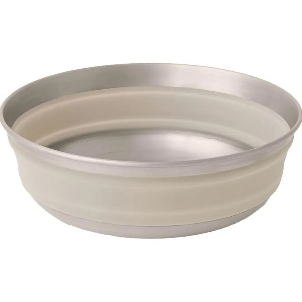 Die Detour Stainless Steel Collapsible Bowl Large von Sea to Summit kannst Du ganz einfach auf all Deine Camping-Trips und Trekking-Touren mit nehmen! Denn die Konstruktion aus Edelstahl und BPA-freiem Silikon ermöglicht ein ganz flaches zusammenlegen der Schüssel (21mm!), sodass sie kaum Stauraum im Rucksack oder Gepäck wegnimmt. Ausgefahren fasst die Schüssel 915ml, sodass dem Müsli-, Suppen-, oder Pastagenuss unterwegs nichts mehr entgegensteht.