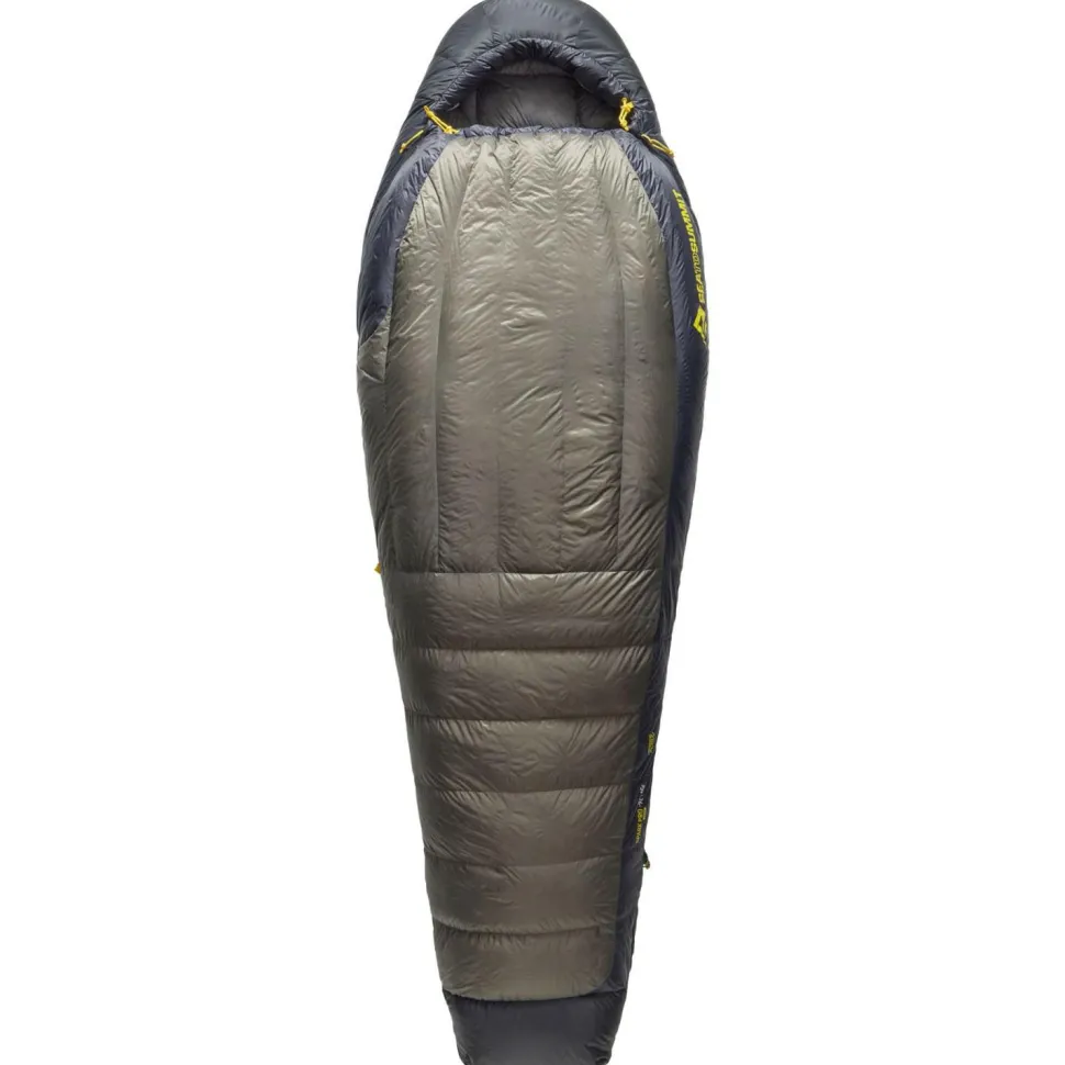 Mit dem Spark Pro -9°- Daunenschlafsack kommen die Outdoor-Spezialisten von Sea to Summit der vielbesungenen eierlegenden UND leichten Wollmilchsau unter den Schlafsäcken für die kalte Hälfte des Jahres ganz schön nahe! Dem „Pro“-Anspruch im Namen macht der Schlafsack alle Ehre. Das untere Limit von -9°Celsius und eine Komforttemperatur von -2°C zeigen an, dass es sich- im Prinzip -nach mitteleuropäischem Standard- um einen Ganzjahres- bzw. Winter-Schlafsack handelt, der Dich auf Deinen Trips vor allem bei frischen Bedingungen warm schlafen lässt, aber beim Gepäck und Packmaß kaum ins Gewicht fällt. Außerdem lässt sich der Schlafsack aufgeklappt auch als Decke nutzen, wenn die Witterung zu mild zu werden droht.Der Mumienschlafsack ist zwar angepasst geschnitten, lässt Dir aber durch die großzügige Fußbox Platz in diesem Bereich. Und die technische, vergleichsweise tiefe Kapuze bietet Dir sowohl beste thermische Isolationsleistung, als auch gemütlichen Komfort. Darüber hinaus ist der Spark Pro -9° koppelbar sowohl mit den frauenspezifischen Schlafsäcken als auch den Quilts von Sea to Summit. Schließlich bietet vorne ein ergonomisch geformter Wärmekragen zusätzlichen Schutz.