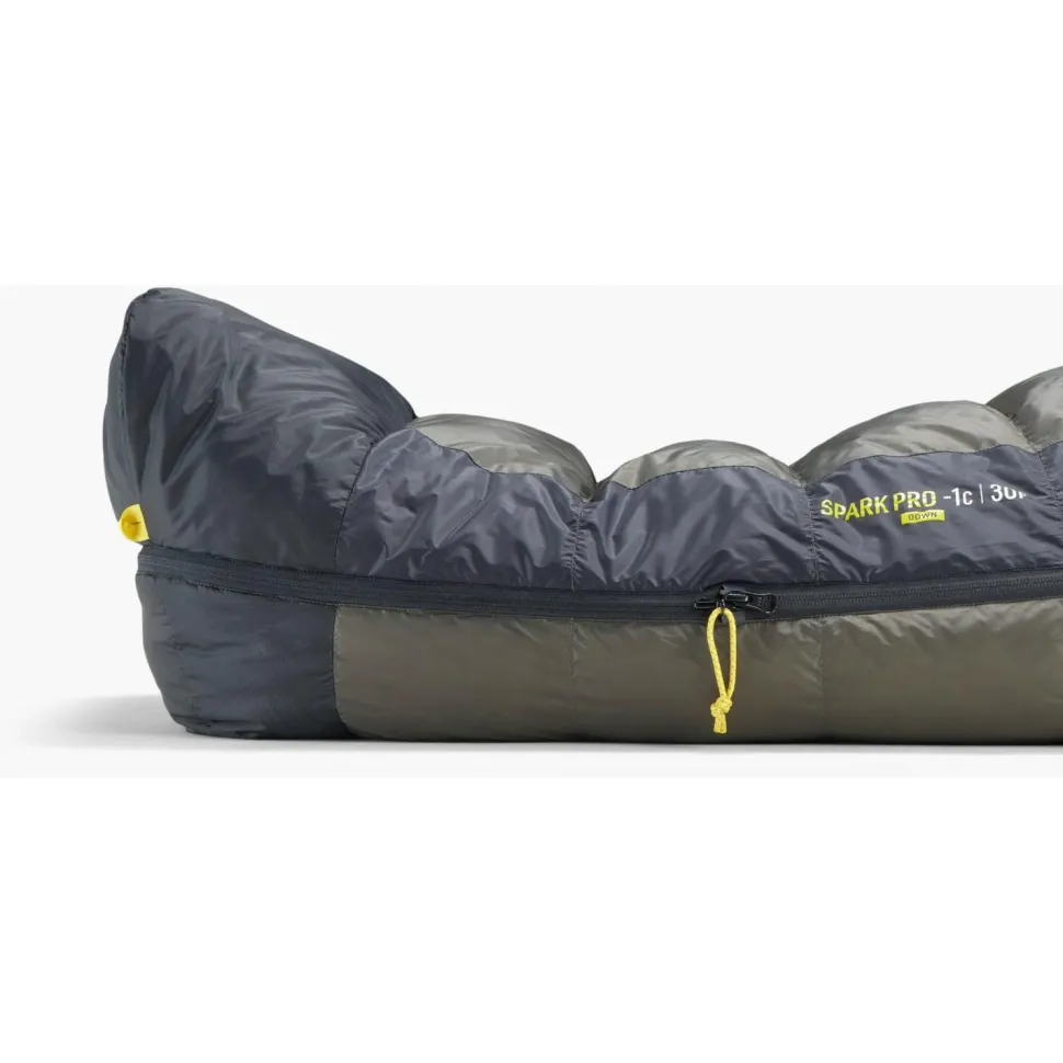 Das Außenmaterial des Spark Pro -9° ist sowohl wasserdicht als auch atmungsaktiv, sodass der Schlafsack im Zelt wie auch im Freien für Komfort sorgt. Die Füllung aus RDS-zertifizierter Gänsedaune kommt mit einer gewaltigen Bauschkraft von 950+ cuin, die für eine Wärmeleistung der Spitzenklasse sorgt. Die Daunen sind mit der Ultra Dry Down-Technologie behandelt, sodass sie eine stark verbesserte Wasserbeständigkeit aufweisen, und auch bei feuchten Bedingungen weiter wärmen und ihren Bausch nicht so schnell verlieren. Konstruiert ist der Schlafsack in einem intelligenten Kammersystem, das an die einzelnen Teile der menschlichen Anatomie angepasst wurde, was für eine optimale Wärmeverteilung sorgt.