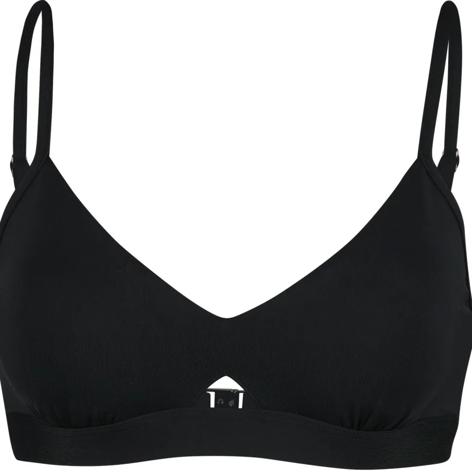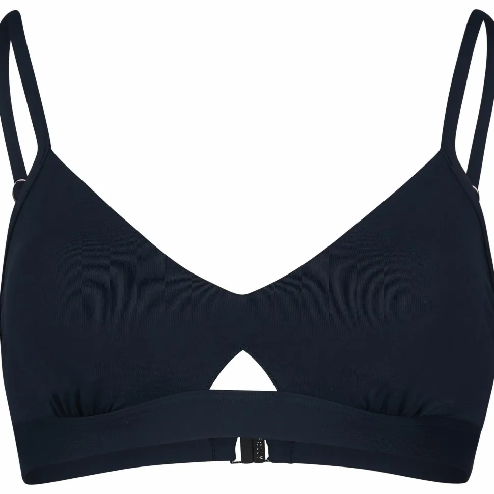 Das elastische Material mit recycelten Polyamid passt sich bequem an Deinen Oberkörper an. Ein breiter Bund unter der Brust sowie schmaler Träger sorgen für den nötigen Halt. Das kleine Cut-Out zwischen den Cups ist ein schickes Detail.