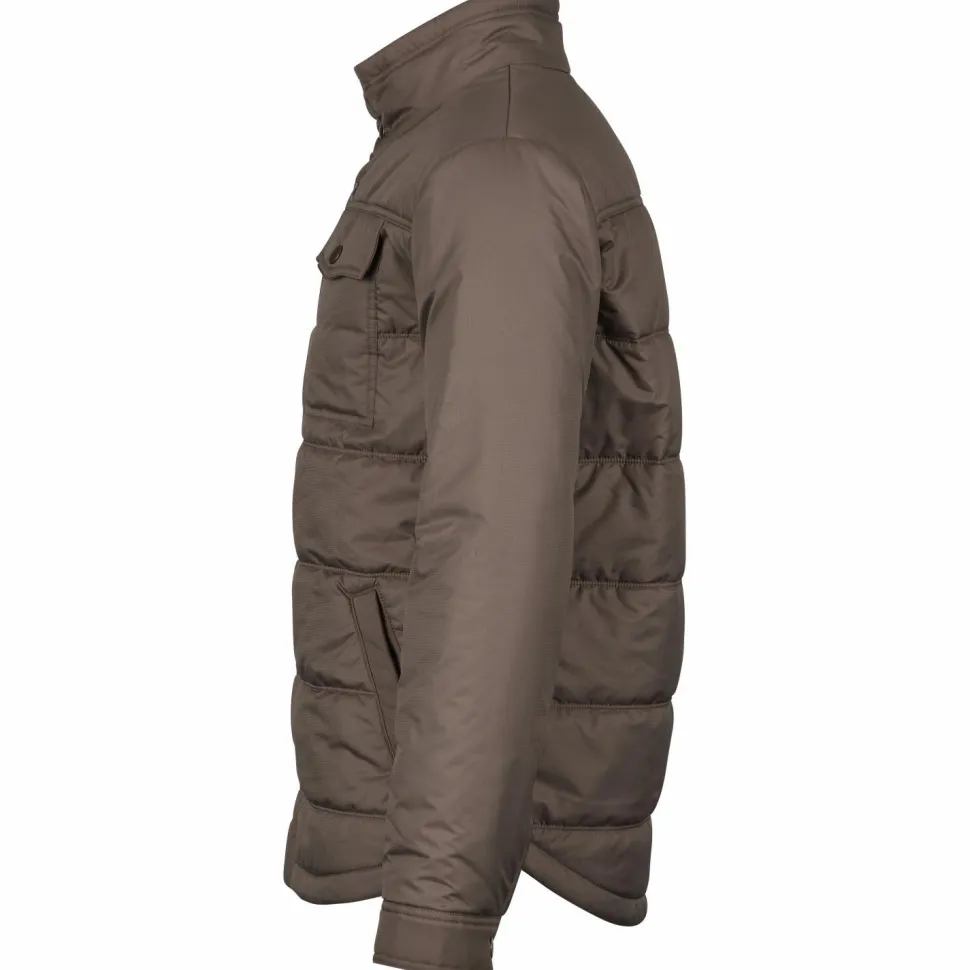 Ausgestattet mit DWR-Imprägnierung können Schmutz und leichte Nässe abgewiesen werden. Schließen oder öffnen lässt sich die Mongar Shirt Jacket per Druckknopfleiste. Die Brusttasche ist ebenfalls mit einem Druckknopf ausgestattet. In den zwei Fronttaschen kannst Du entweder Deine Hände aufwärmen oder kleine Sachen griffbereit verstauen. Der Stehkragen hält bei geschlossenen Druckknöpfen den Hals und Nacken warm, während der verlängerte Schnitt den unteren Rücken besser vor Kälte schützt.