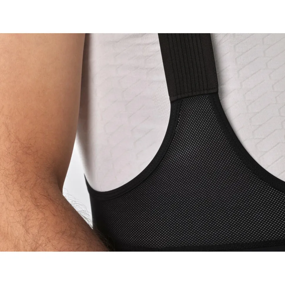 Das komprimierende Gewebe am Oberschenkel besteht größtenteils aus recyceltem Polyamid und bietet eine angenehme Mischung aus Halt und Flexibilität. Der breite, elastische Beinabschluss mit integriertem Silikon sorgt dafür, dass die Shorts auch bei aggressivem Pedalieren nicht verrutschen. Die elastischen Träger mit speziellen Belüftungskanälen und das stützende Netzgewebe an der Taille erhöhen den Tragekomfort und verbessern die Luftzirkulation, was besonders bei langen Fahrten in der Hitze spürbar ist.