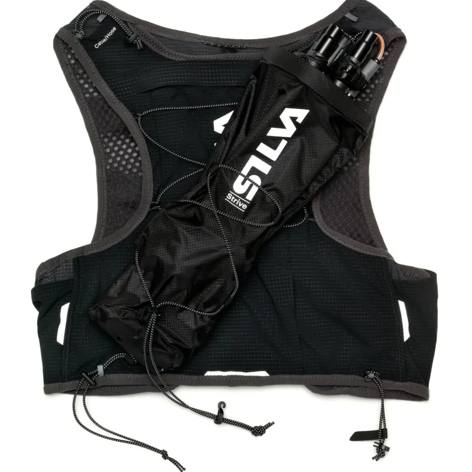 Die komfortable und vielseitig funktionale Strive 10 hat insgesamt sieben Fächer und Taschen mit und ohne Reißverschluss. Außerdem ist sie für die Befestigung von Jacken, Ladekabeln, Trinkblasen, Softflasks und Laufstöcken (Letztere mit oder ohne Strive Quiver Tasche) optimal vorbereitet.