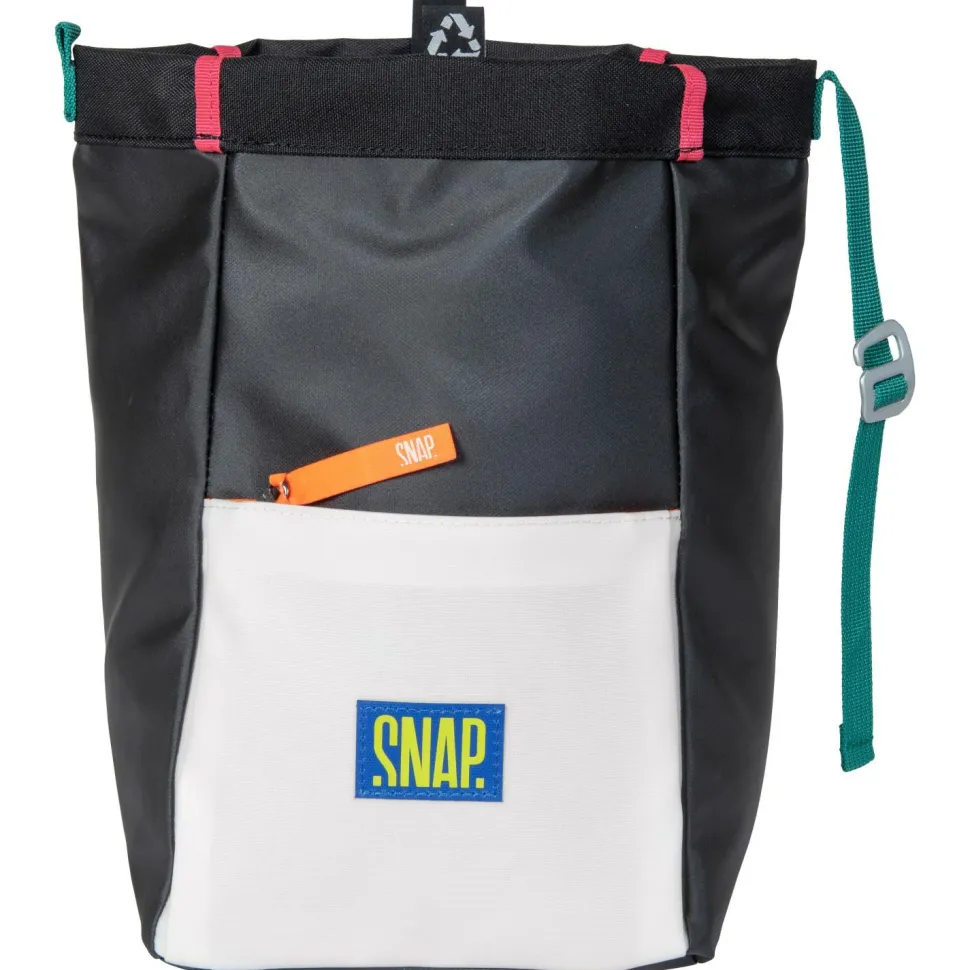 Das Big Chalk Bag der französischen Kletter-Spezialisten von Snap ist etwas mehr als nur ein praktisches Behältnis für Dein Magnesiumkarbonat. Denn dieser große, wasserdichte Chalk-Beutel hat auch noch zwei jeweils mit einem Reißverschluss gesicherte Taschen, in denen Du dein Smartphone, den Schlüssel, Geldbeutel oder Ähnliches verstauen und immer bei Dir haben kannst. Das Chalk-Fach wird mit einem Klettverschluss geschlossen.