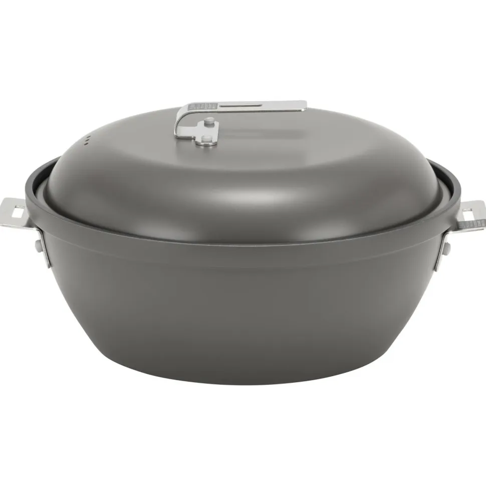Ob Braten, Backen oder Schmoren – das Field Cooker Pro von Snow Peak ist der ideale Allrounder für die Campingküche! Das dreiteilige Kochset aus Aluminium besteht aus einem großen Topf, einem Reiskochtopf und einer Bratpfanne, die dank dem modularen Design auch als Topfdeckel verwendet werden kann. Der Topf und die Pfanne sind mit einer Antihaftbeschichtung versehen und die einklappbaren Griffe aus langlebigem Edelstahl machen das Verstauen zum Kinderspiel.