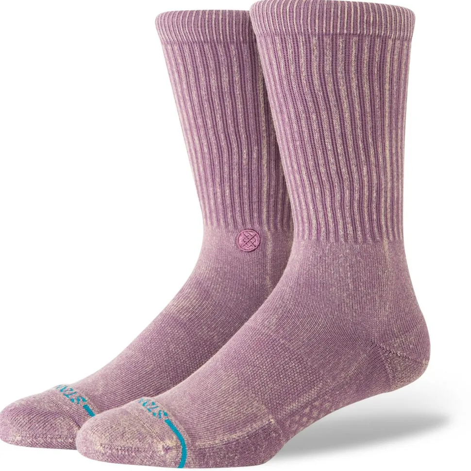 Die Stance Icon Dyed Crew Socken bieten Dir ein unvergleichliches Tragegefühl. Die Kombination aus weicher Baumwolle und strapazierfähiger Kunstfaser sorgt dafür, dass Deine Füße den ganzen Tag über angenehm trocken bleiben. Dank der atmungsaktiven Eigenschaften des Materials wird übermäßiges Schwitzen vermieden, während die nahtlose Verarbeitung im Zehenbereich Druckstellen und Reibung reduziert. So kannst Du Dich auf optimalen Komfort im Alltag freuen.