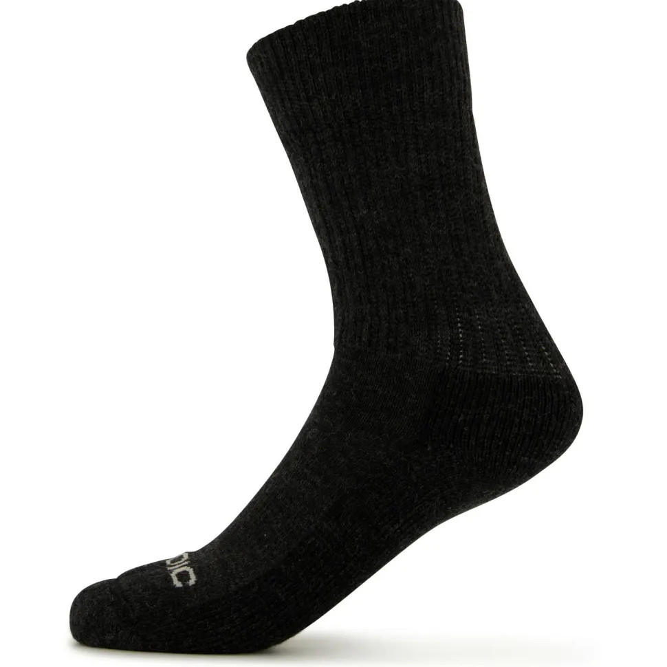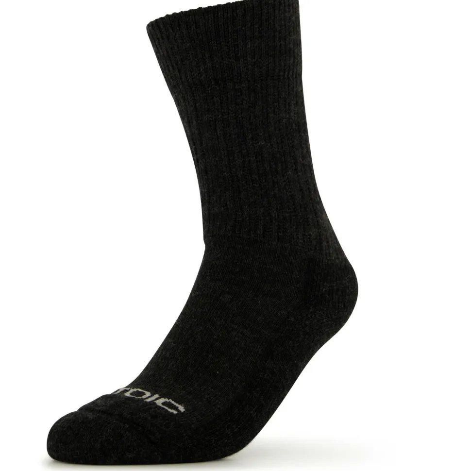 Klassisch, schlicht und funktional – das sind die Merino Trekking Classic Socks von Stoic. Mit fast 80 Prozent Merinowolle sorgen sie für ein weiches, natürliches Tragegefühl und erzeugen ein ausgewogenes Mikroklima im Schuh. Unangenehme Gerüche nimmt die Wolle kaum an und riecht meist auch nach mehreren Tagen noch relativ frisch – ideal für Trekkingtouren! Ein gewisser Anteil an Kunstfasern darf im Gewebemix nicht fehlen, denn hierdurch behalten die Socken ihre Form, sind langlebiger und trocknen noch schneller.