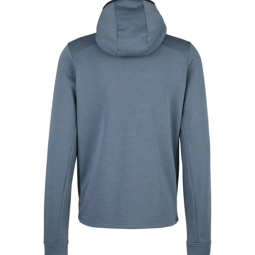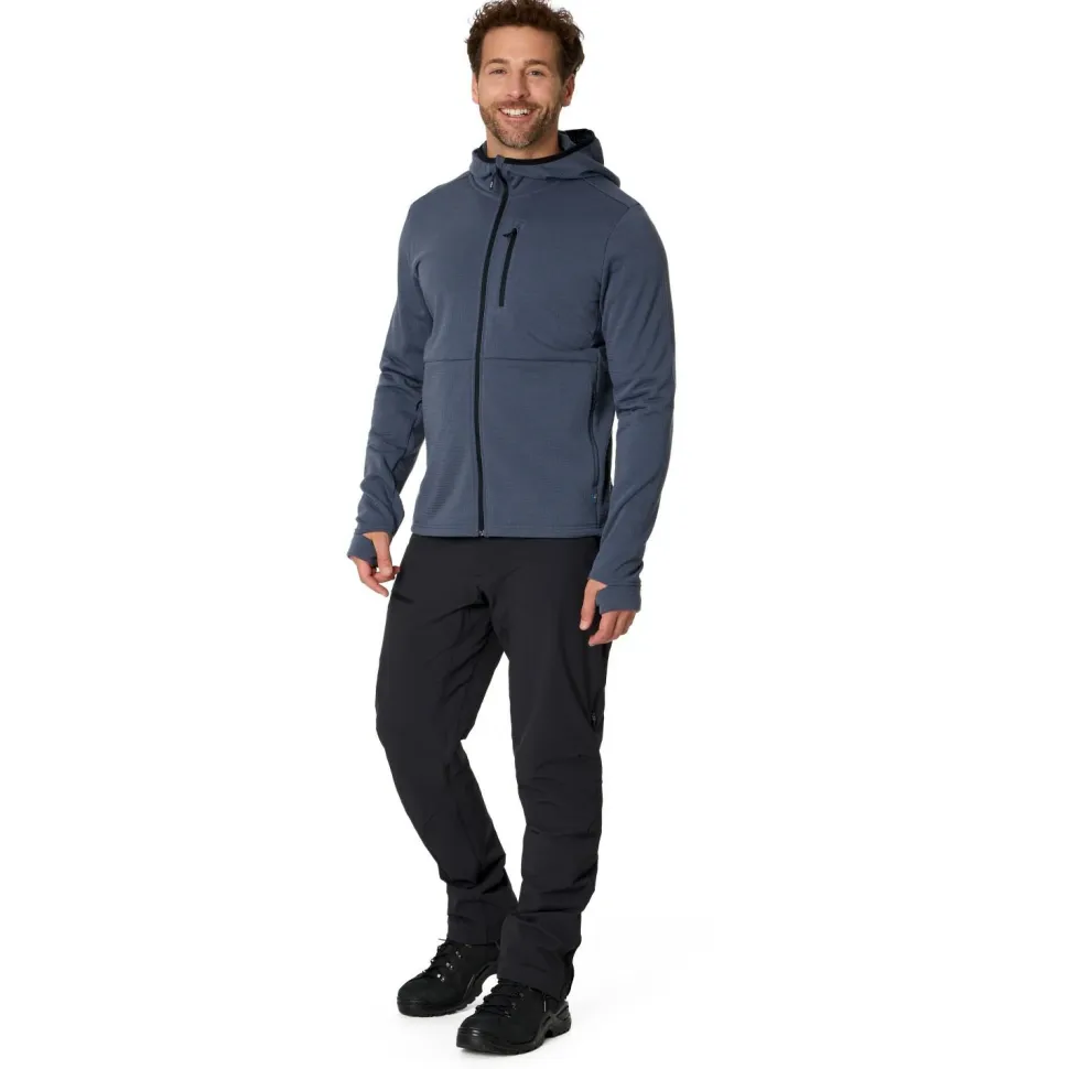 Der Mix aus 50 % Merinowolle und 50 % Polyester verbindet Komfort mit Funktion. Merinowolle liegt weich auf der Haut und wirkt geruchsregulierend – ideal für längere Touren. Polyester sorgt für Strapazierfähigkeit und schnelle Trocknung. Die elastisch eingefasste Kapuze sitzt bequem und schützt Dich vor Wind, während die versetzten Schulternähte Druckstellen unter dem Rucksack vermeiden. Die elastischen Ärmelbündchen mit Daumenschlaufen halten alles dort, wo es hingehört – auch bei aktiven Bewegungen.
