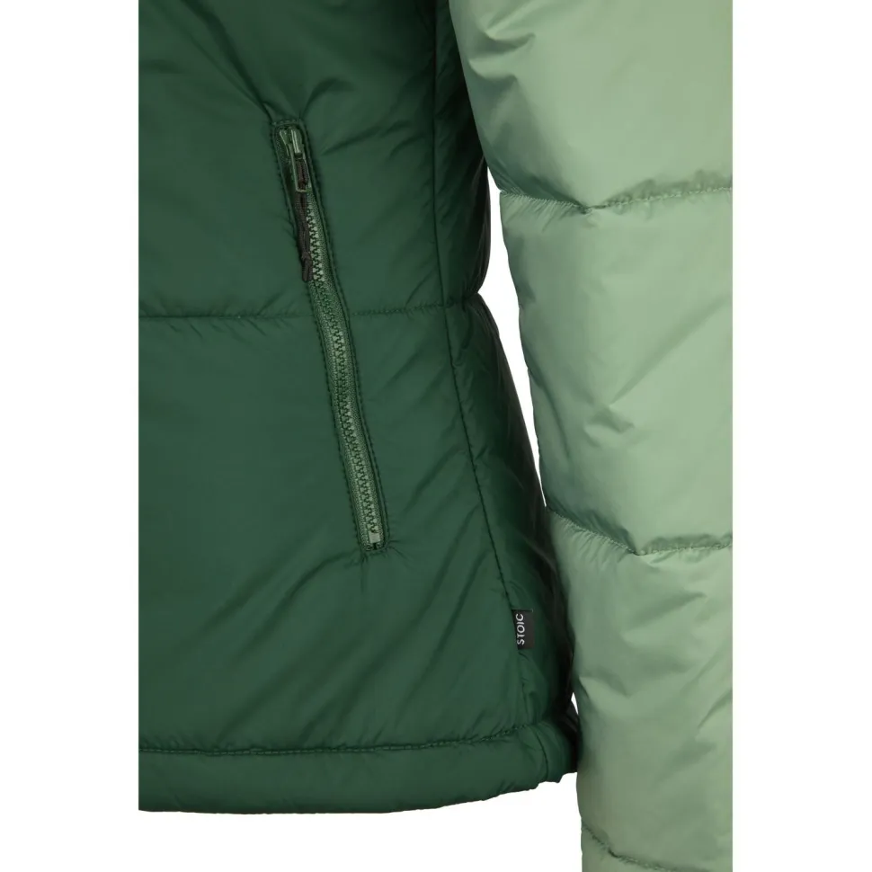 Wenn Du draußen unterwegs bist – ob beim Wandern, auf Reisen oder beim täglichen Abenteuer – brauchst Du eine Jacke, die zuverlässig wärmt und sich flexibel anpasst. Die Stoic Women’s MountainWool120 StorboSt. II Hoody ist leicht, funktional und lässt sich ganz einfach in ihrer eigenen Innentasche verstauen. Die elastisch eingefasste Kapuze mit Kordelzug am Hinterkopf sitzt bequem und schützt Dich zuverlässig vor Wind. Der Stehkragen, die elastischen Ärmelbündchen und der Kordelzug im Saum sorgen für einen passgenauen Sitz – ideal für wechselhafte Bedingungen.