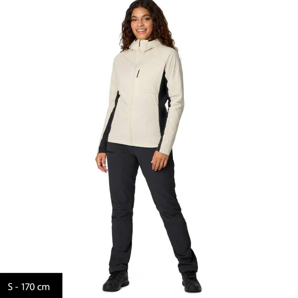 Der Women’s MountainWool60 JokkmokkSt. Hybrid Hoody ist robust, leicht und durchdacht – perfekt für anspruchsvolle Touren und lange Tage draußen. Die Lavalan-Füllung punktet mit natürlicher Thermoregulation und bleibt auch bei wechselhaftem Wetter zuverlässig. Die Stretcheinsätze sorgen dafür, dass Du Dich frei bewegen kannst, ohne Kompromisse bei der Wärmeleistung einzugehen. Ob Du Höhenmeter sammelst, durch Wälder ziehst oder einfach nur draußen unterwegs bist – diese Jacke macht alles mit und passt sich Deinen Bedürfnissen an.