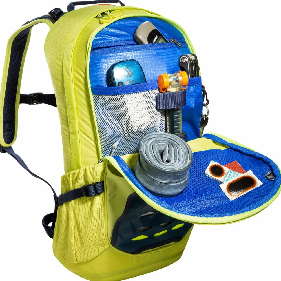 Der Bike Backpack MTB 14 von Tatonka ist ideal für Ausflüge mit dem Mountainbike. In dem großen Hauptfach, dem Reißverschluss-Frontfach inkl. Schlüsselclip und Organizer sowie den beiden elastischen Flaschenhalterungen und dem integrierten Helmnetz hast Du eine Menge Stauraum, um alles Wichtige unterzubekommen. Dank der Rückenbelüftung ist der Rucksack auch bei anstrengenden Touren und heißen Außentemperaturen optimal. Durch die gepolsterten Schultergurte, den Hüft- und Brustgurt sitzt der Rucksack auch angenehm. Für die Verschnaufpause zwischendurch kannst Du eine Trinkblase in dem dafür vorgesehene Fach mitnehmen. Außerdem sind unbeständige Witterungsverhältnisse für den Bike Backpack MTB 14 gar kein Problem, da er wasserdicht ist und zusätzlich eine Regenhülle hat.