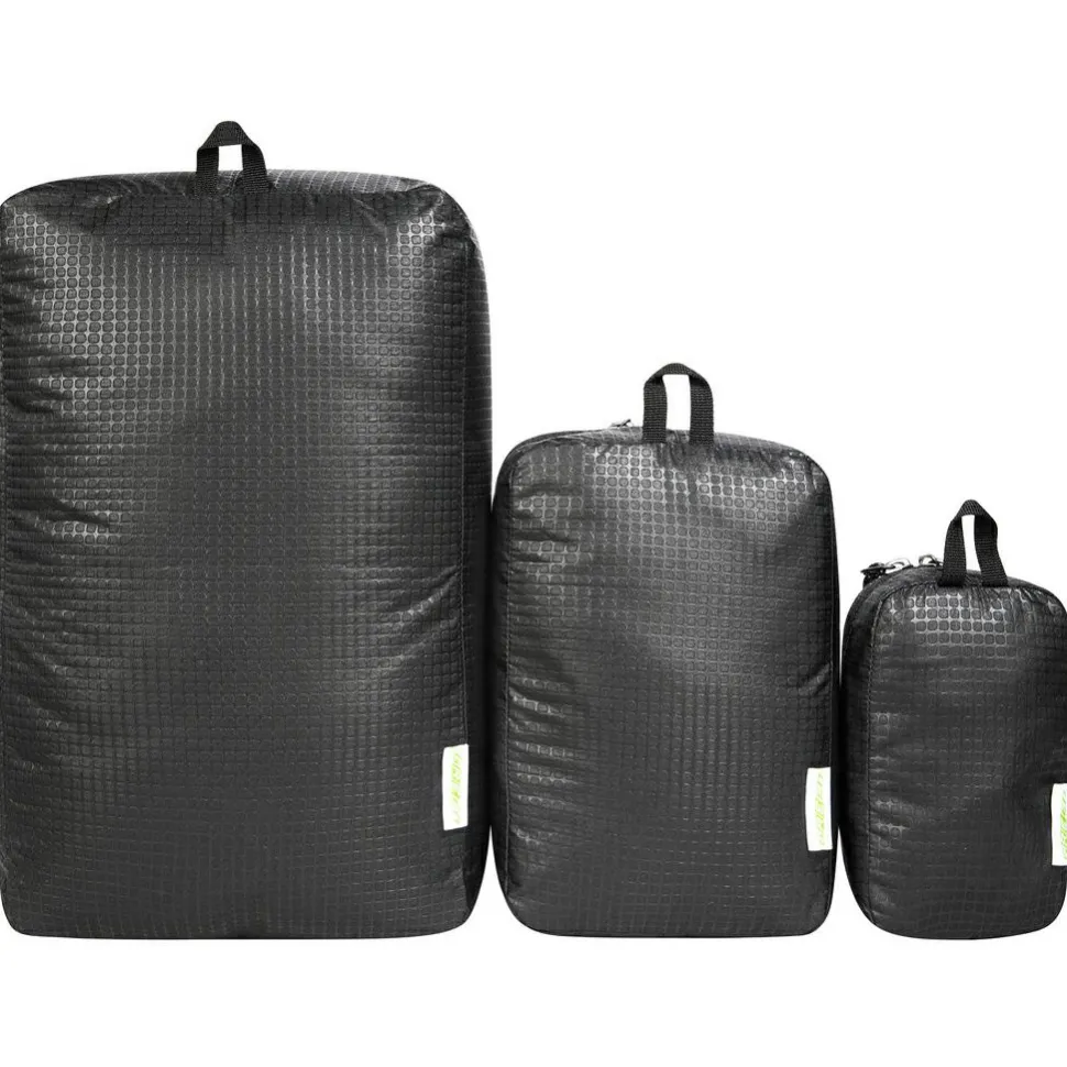 Das Stuffsack Zip Set III von Tatonka kommt im praktischen dreier Pack mit drei verschiedenen Größen. Die Packsäcke bestehen zu 100 % aus Polyester, sind wasserabweisend und leicht. Dadurch kannst Du sie super gut mit auf Reisen, in den Campingurlaub oder auf Trekkingtouren nehmen. Jeder Packsack ist mit einem Zweiwege-Reißverschluss versehen.