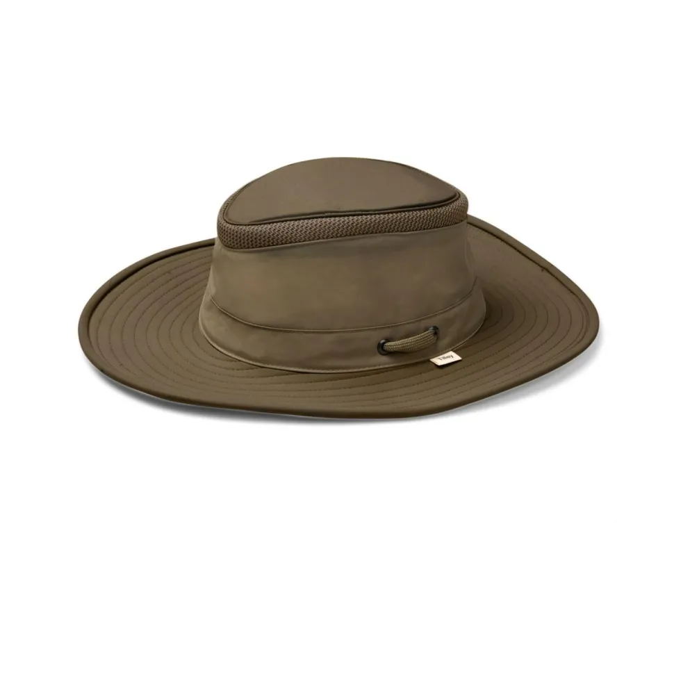 Luftiger Sommerhut mit wasserabweisenden Eigenschaften – der LTM6 Airflow Hat von Tilley schützt vor Sonne und Regen gleichermaßen. Dank des hohen Litschutzfaktor 50+ kommen keine schädlichen UV-Strahlen durch das Gewebe. Durch eine DWR-Behandlung ist der Hut dauerhaft stark wasserabweisend. Durch den Kordelzug am Kinn kann er sicher befestigt werden und fliegt auch bei starkem Wind nicht davon.