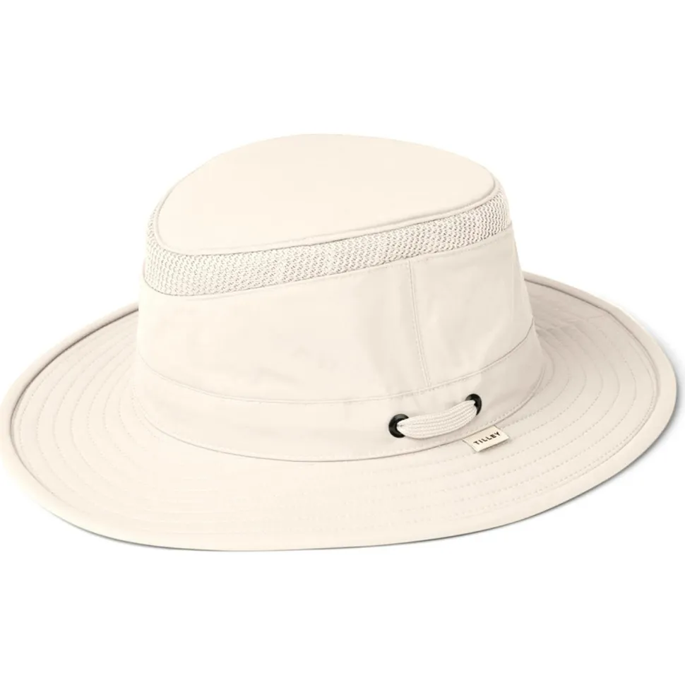 Leichter Reisehut mit Membran und solidem Wetterschutz – der LTM5 Airflow Hat von Tilley ist komfortabel und funktional zugleich. Der Hut ist aus leichtem Nylon gefertigt. Dank der integrierten Membran lässt er Nässe nicht in den Innenraum. Gleichzeitig ist das Gewebe atmungsaktiv und schnell trocknend. Dadurch wird Feuchtigkeit schnell nach außen abgeleitet. Das Hydrofil Band am Saum fängt Schweiß auf. In einer versteckten Sicherheitstasche kann man wichtige Gegenstände verstecken. Dank des Kordelzugs lässt sich der Hut sicher befestigen. Dadurch bleibt er auch an stürmischen Tagen sicher an Ort und Stelle.