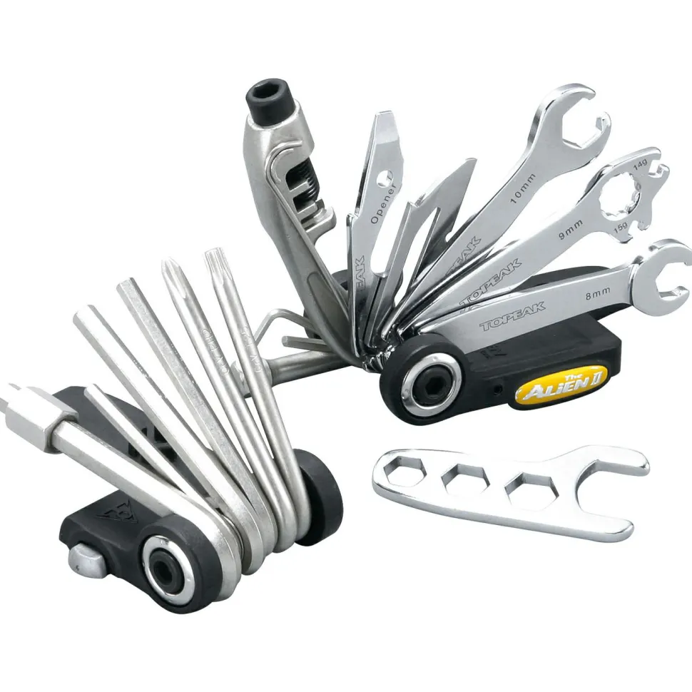 Mit dem Alien 2 Fahrradwerkzeug von Topeak lassen sich Defekte am Rad unterwegs rasch beheben. Das Bike-Tool ist mit allem ausgestattet, was während einer Tour gebraucht wird. Das Werkzeug ist mit folgenden Funktionen ausgestattet: