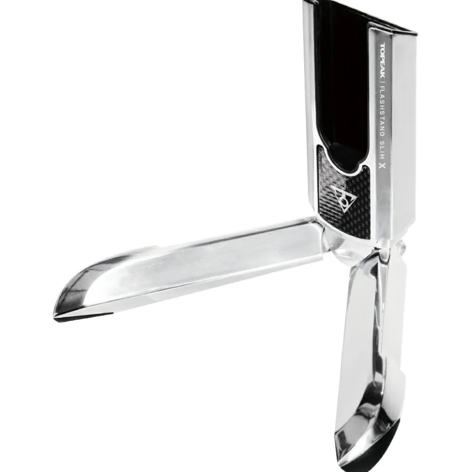 Der faltbare FlashStand Slim X von Topeak lässt sich im beiliegenden Aufbewahrungsbeutel komfortabel transportieren. Der Fahrradständer ist für Rennräder geeignet und kann zur Wartung ebenso genutzt werden wie zur Aufbewahrung Deines Rennrads. Das leichte und schicke Aluminium macht den Montageständer zu einem echten Hingucker.