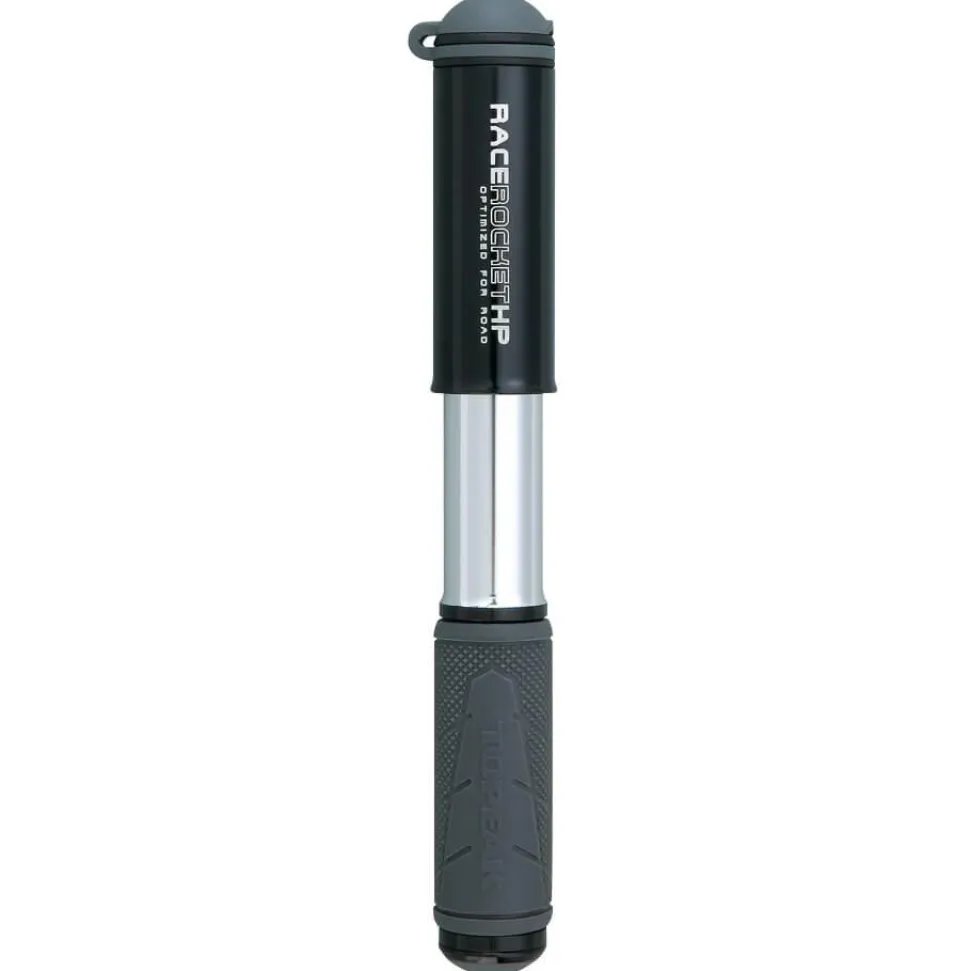 Klein und praktisch, das ist die RaceRocket HP Minipumpe von Topeak. Diese Pumpe ist speziell für Rennräder und daher schmal und leicht. Der Schlauch ist ausziehbar und so ideal für den ambitionierten Rennfahrer. Mit dem gummierten Griff kann man komfortabel pumpen.