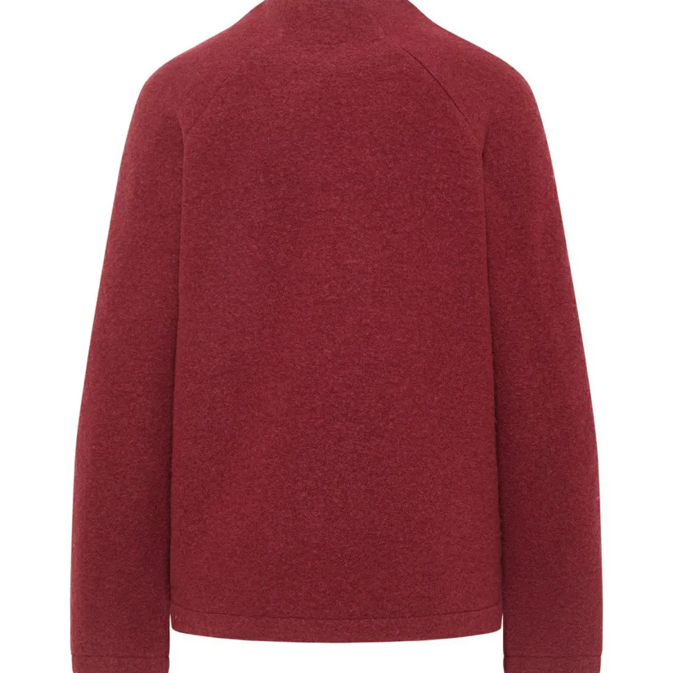 Die Raglanärmel sorgen für Bewegungsfreiheit. In Kombination mit dem kleinen Stehkragen verleihen sie dem Women’s Kurzer Pullover aus Reiner Walkwolle Wollpullover das gewisse Etwas.