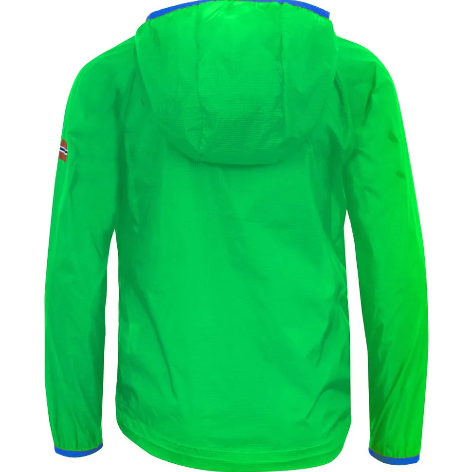 Leichter als eine Tafel Schokolade, aber zuverlässig, wenn’s drauf ankommt: Die Kids Fjell Running Jackt von Trollkids ist eine praktische, sehr leichte Windjacke für Mädchen und Jungen. Perfekt zum überall dabei haben und schnellen Überziehen, zum Beispiel am Strand, beim Wandern, Radeln oder auf dem Spielplatz. Wenn der Wind um die Ohren pfeifft, sorgt die Kapuze ruckzuck für einen warmen Kopf. Zwei praktische Taschen mit Reißverschluss bieten Stauraum für alles, was die Kleinen unterwegs gerne dabei haben. Elastische Ärmelbündchen dichten die Jacke zusätzlich ab und optimieren die Passform. Mit attraktivem Trollkids-Logoprint auf der Brust und am Ärmel.