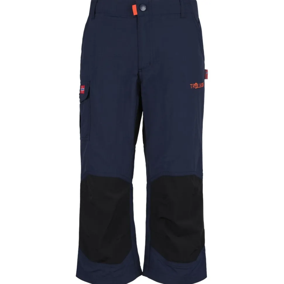 Die Kid’s Hammerfest 3/4 Pants von Trollkids ist eine pflegeleichte und strapazierfähige Trekkinghose für Kinder, die so einiges aushält, wenn man draußen unterwegs ist.Das robuste Gewebe der Hose ist leicht und liefert daher ein unbeschwertes Tragegefühl. Der Stoff der Hose hat einen weichen textilen Griff und zeigt sich besonders resistent gegen oberflächliche Verschmutzungen. An Knien und Gesäß sorgen Verstärkungen aus robustem Stretch-Gewebe für Schutz gegen Risse und Löcher im Stoff. So wird die Hose zu einem langlebigen Begleiter bei allen Outdoor-Abenteuern.Der Bund der Hose lässt sich auf der Innenseite durch einen integrierten Gummizug und einen Knopf in der Weite regulieren.Ob Wandern, campen oder draußen spielen – die Kid’s Hammerfest 3/4 Pants passt immer!