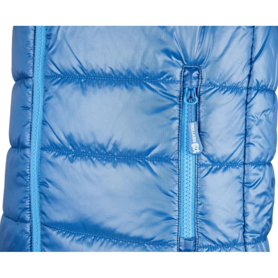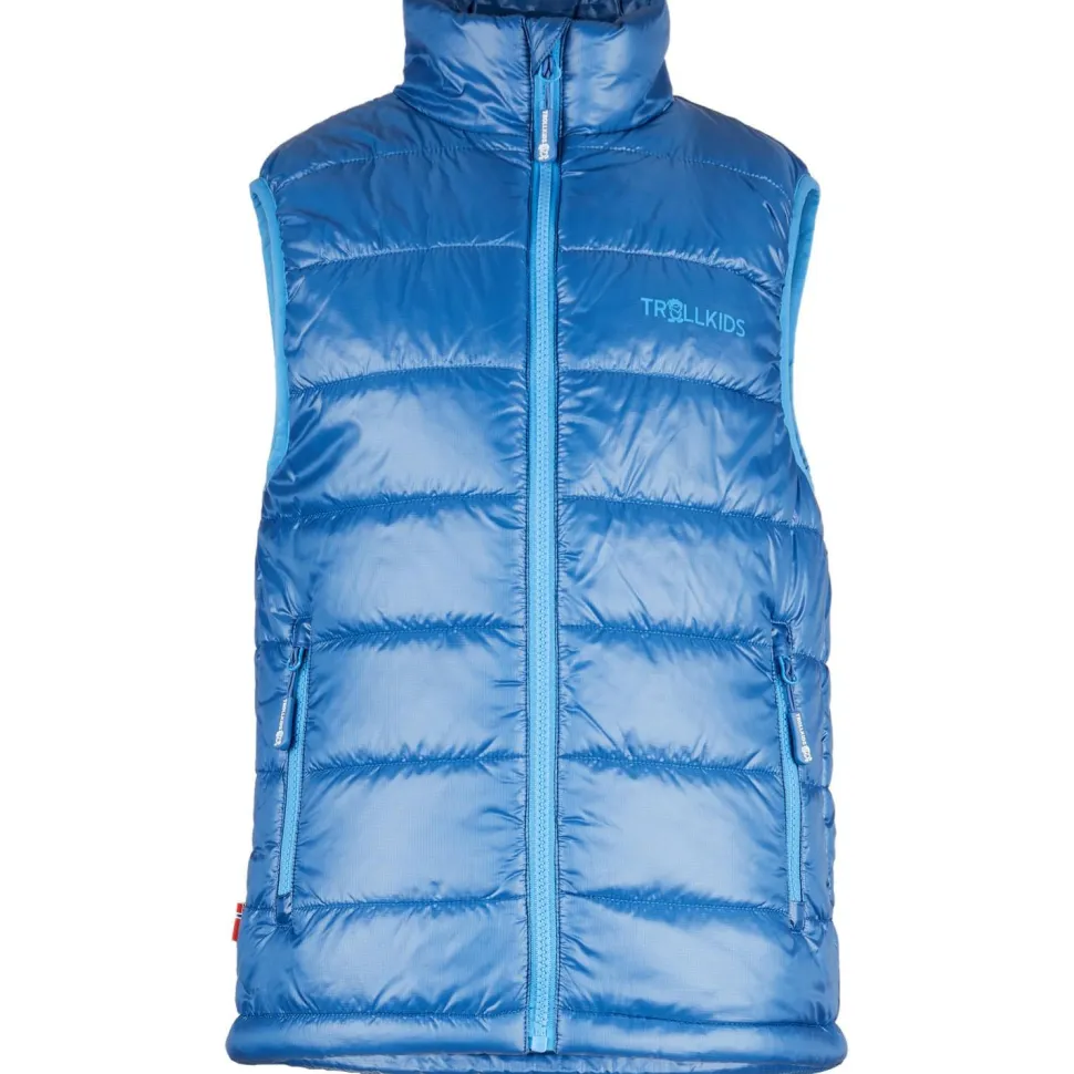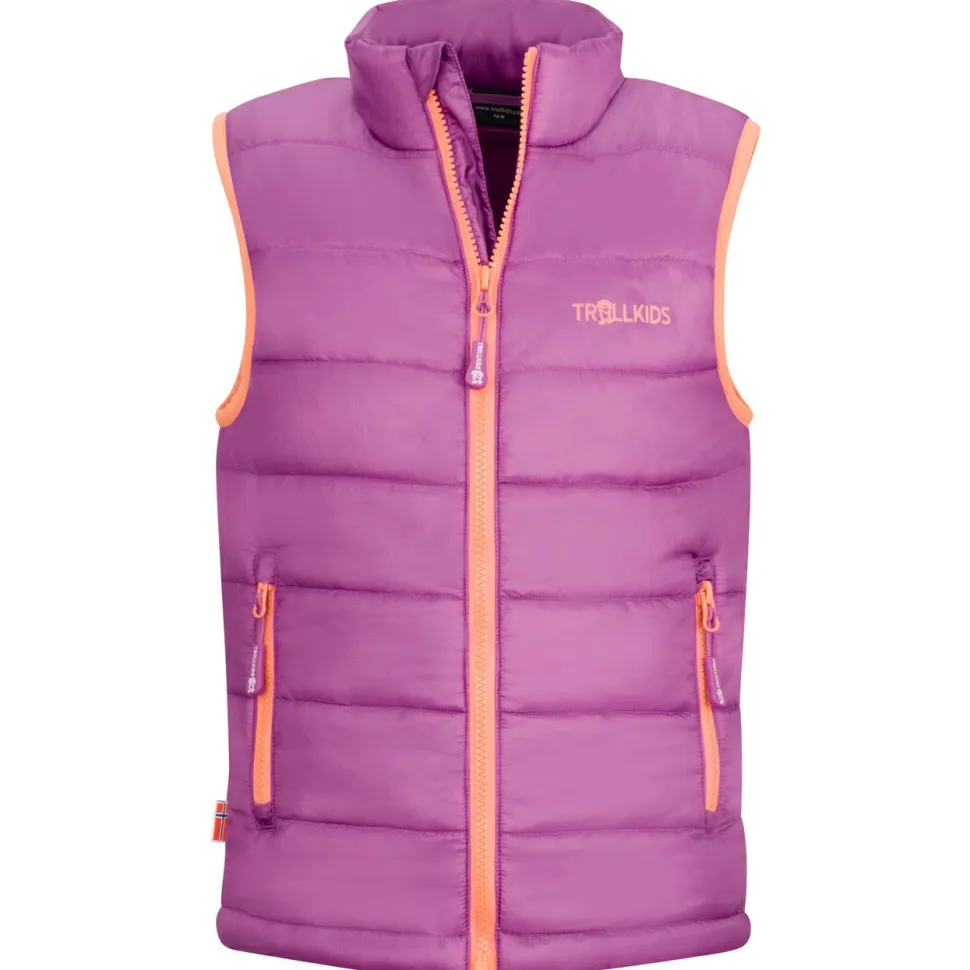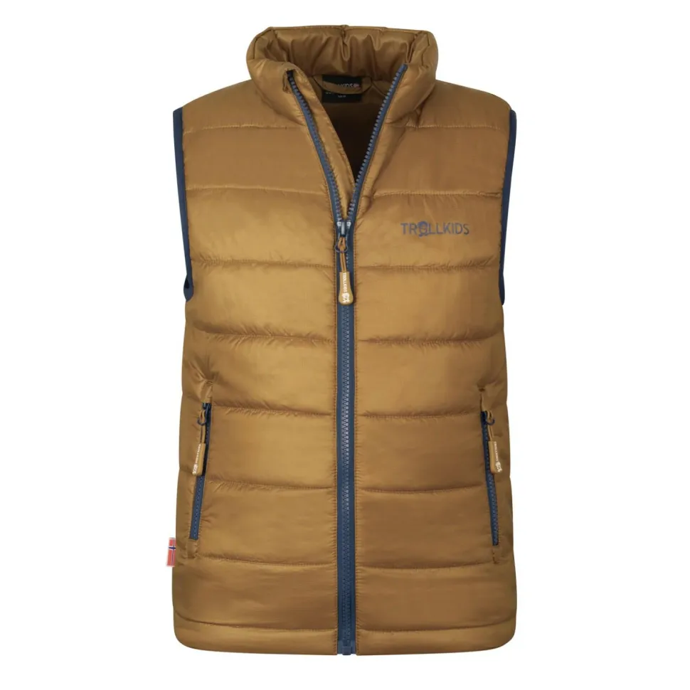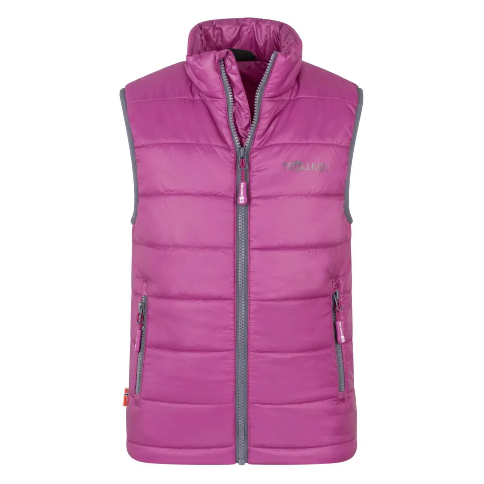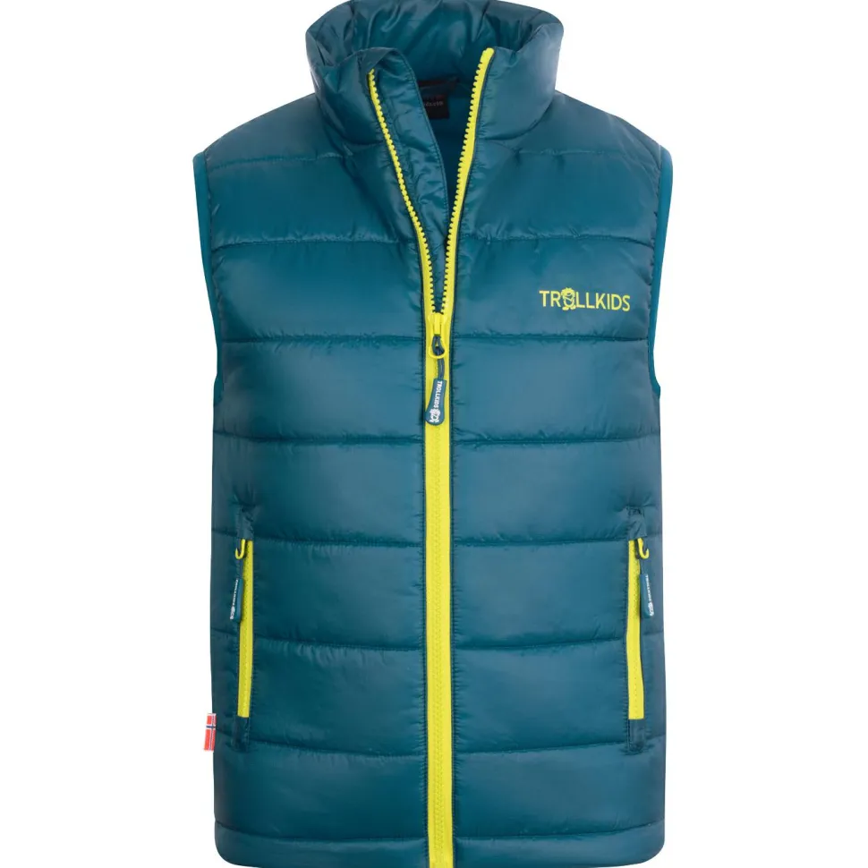 Die Kids Trondheim Vest von Trollkids ist ideal für Jungs und Mädchen, die beim Toben, Klettern und Spielen gerne die volle Bewegungsfreiheit genießen. Die ultraleichte Steppweste aus atmungsaktiver Kunstfaser hält den Oberkörper angenehm warm und die Arme bleiben frei – perfekt für ausgiebige Kletterpartien zum Beispiel in der kühlen Boulderhalle, im Kletterwald oder auf dem Spielplatz. Auch bein Ballsporttraining draußen schützt sie vor Auskühlen. Zwei Seitentaschen mit Reißverschluss bieten Stauraum für kleine Accessoires, ein elastischer Hüftbund dichtet die praktische Weste nach unten ab und optimiert die Passform.