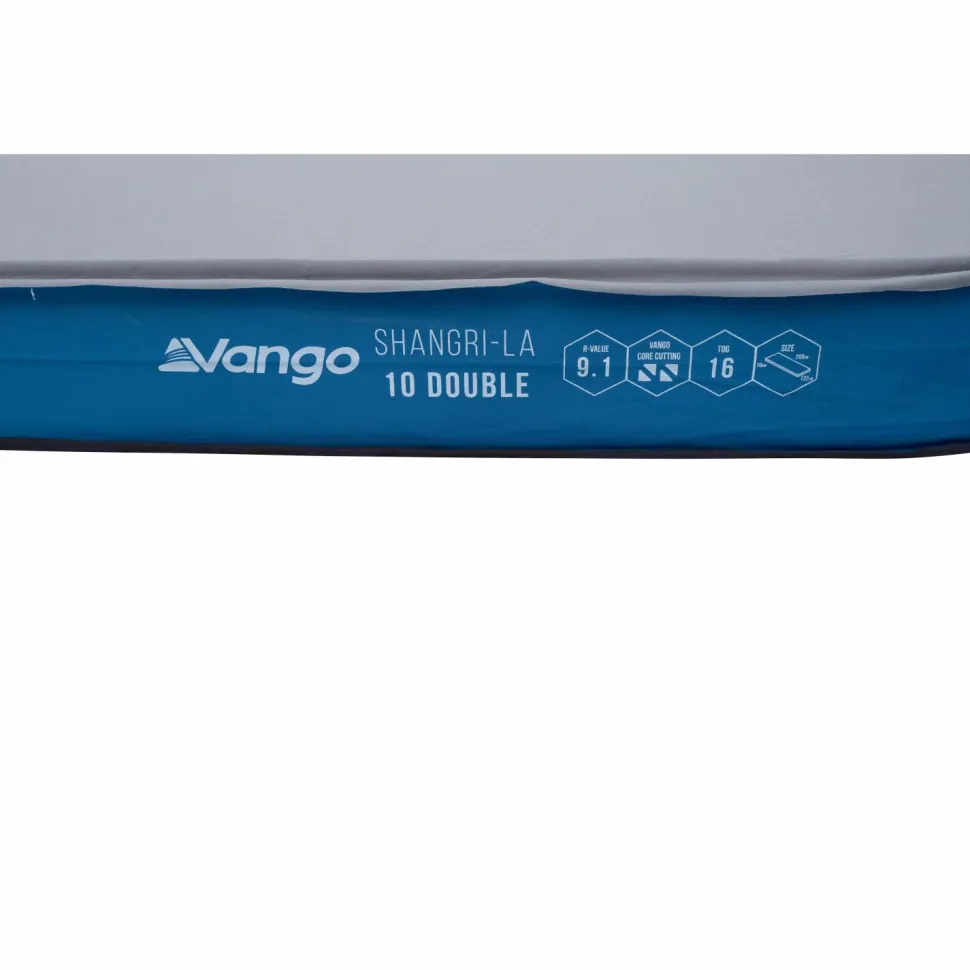 Mit der Shangri-La II 10 Double hat Vango eine vielseitige Isomatte im Angebot, die sich sowohl für den Campingplatz als auch für Trekkingtouren eignet. Der Packsack ist mit einer besonders breiten Öffnung konstruiert, um das Ein- und Auspacken der Luftmatratze zu erleichtern. Die selbst aufblasende Reisematte bietet bequem Platz für zwei Personen und sorgt dank der weichen Oberfläche für hohen Schlafkomfort. Durch die zwei Cyclone Ventile bläst sich die Vango Shangri-La II 10 Double Isomatte auf Reisen in wenigen Minuten auf.