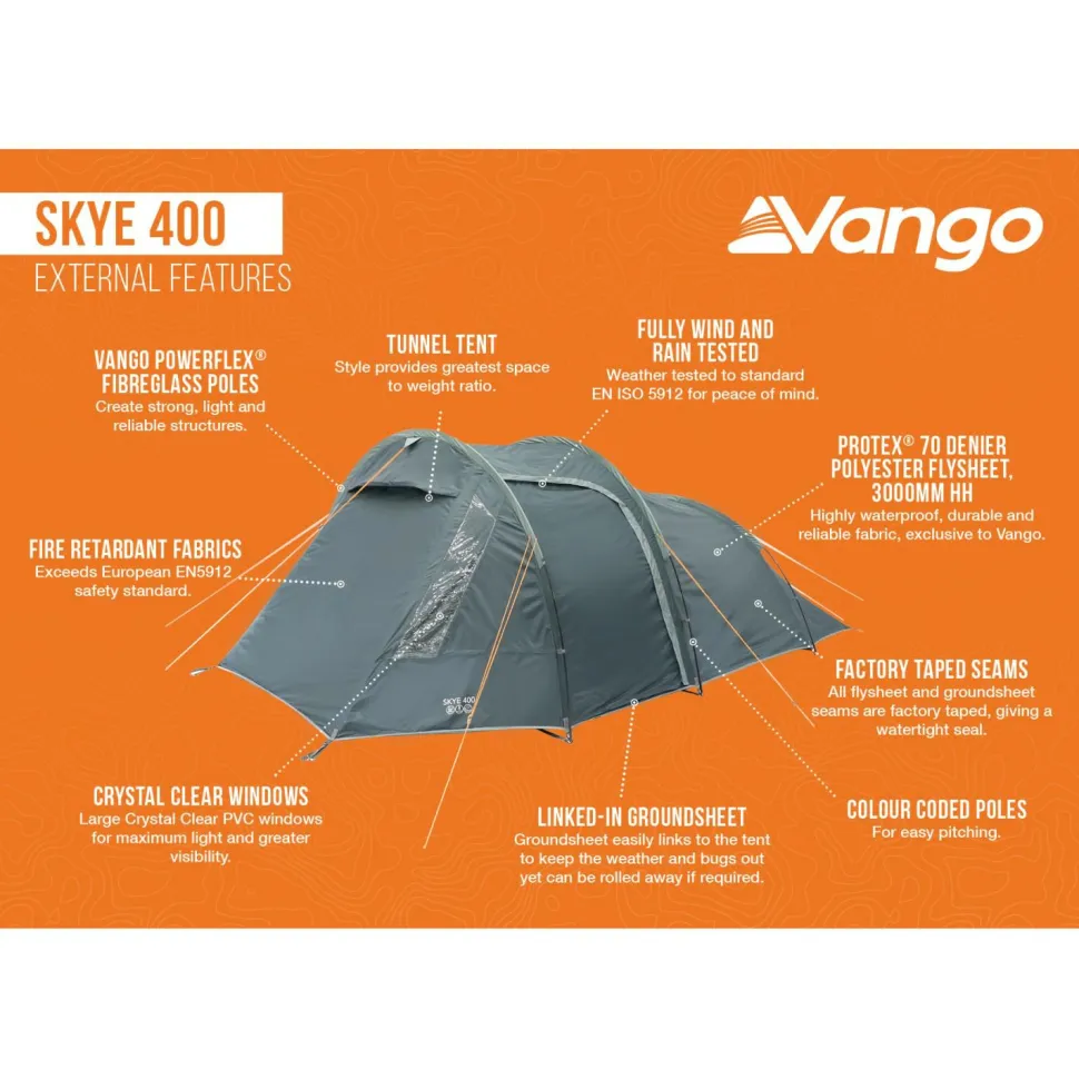 Wer Komfort beim Campen sucht, der ist mit dem 4-Personen-Zelt Skye 400 von Vango gut ausgestattet!