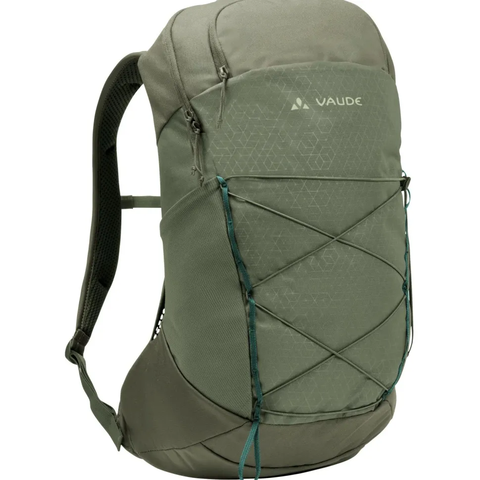 In den Agile Air 20 Wanderrucksack von Vaude passen bei 20 Liter Volumen zwischen 3 und 8 kg Proviant und Ausrüstung. Für kurze Touren und Tageswanderungen hat der Rucksack damit genügend Reserven, um alle wichtigen Utensilien zu transportieren. Der schmal geschnittene Rucksack ist mit ergonomisch geformten ErgoShape Schultergurten und einem gut belüfteten Aeroflex 3D Rückensystem ausgestattet. So sorgt der Rucksack beim Wandern für angenehme Ventilation und tolle Bewegungsfreiheit. Der Agile Air 20 ist für die Verwendung von Trinksystemen vorbereitet und verfügt über eine extra Fronttasche, eine elastische Seitentasche und eine frontale Gummizughalterung. Eine Stockhalterung, der abnehmbare Hüftgurt und ein Brustgurt gehören zur Ausstattung.