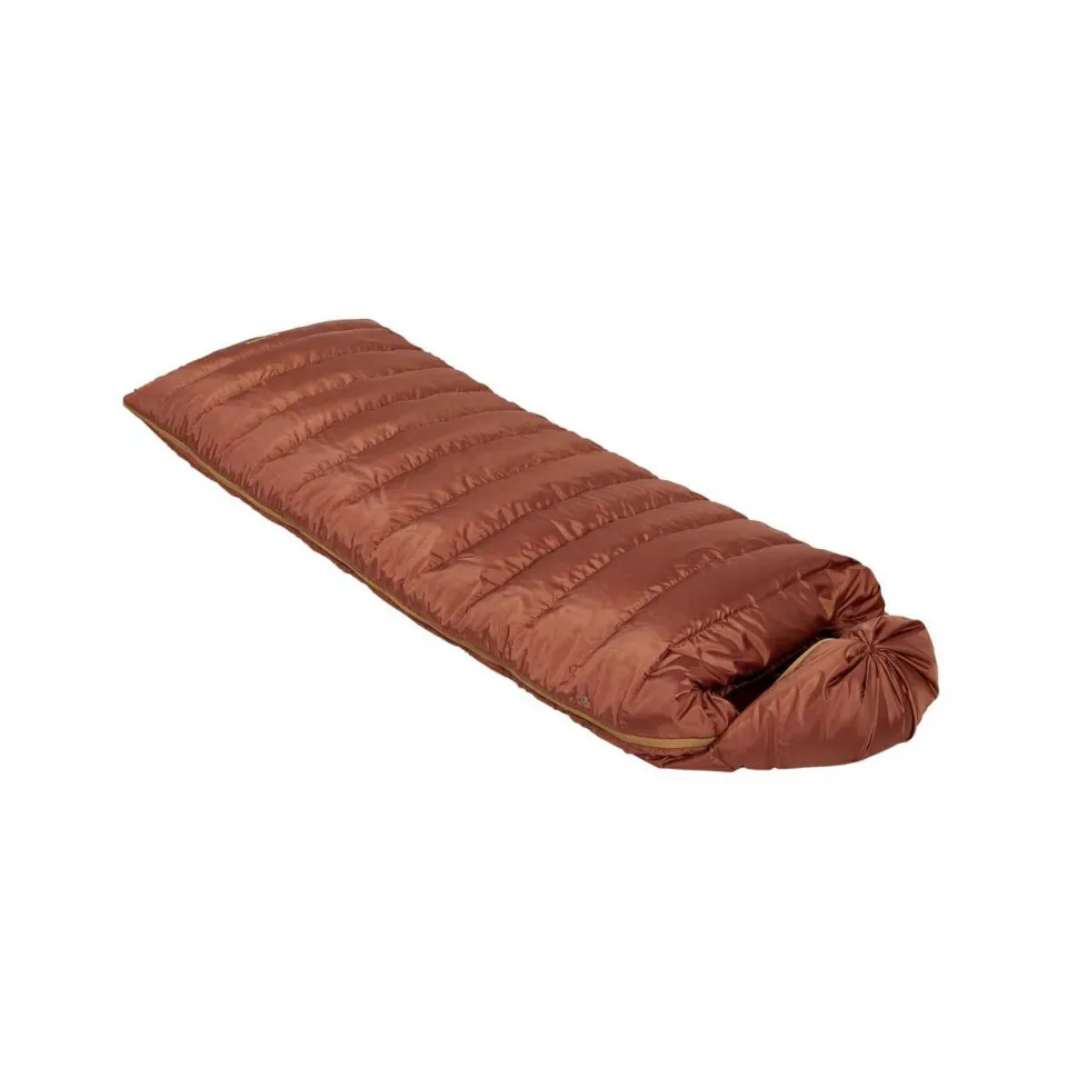 Die Daunenfüllung bietet einen exzellenten Wärmekomfort, ohne ins Gewicht zu fallen. Das Innenmaterial ist besonders weich und hautfreundlich. Seitlich lässt sich der Schlafsack komplett öffnen, damit Du ihn als Decke verwenden kannst. Ein zweiter Reißverschluss ermöglicht eine tolle Bewegungsfreiheit für die Arme, während Du im Schlafsack sitzt. Kleinigkeiten kannst Du in der Innentasche verstauen. Platzsparend wird der Schlafsack im Kompressionssack verstaut. Ideal für spontane Ausflüge mit Van oder Zelt!