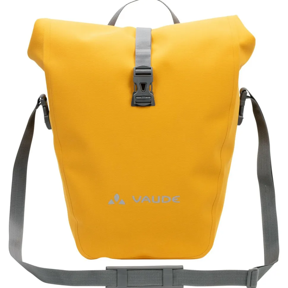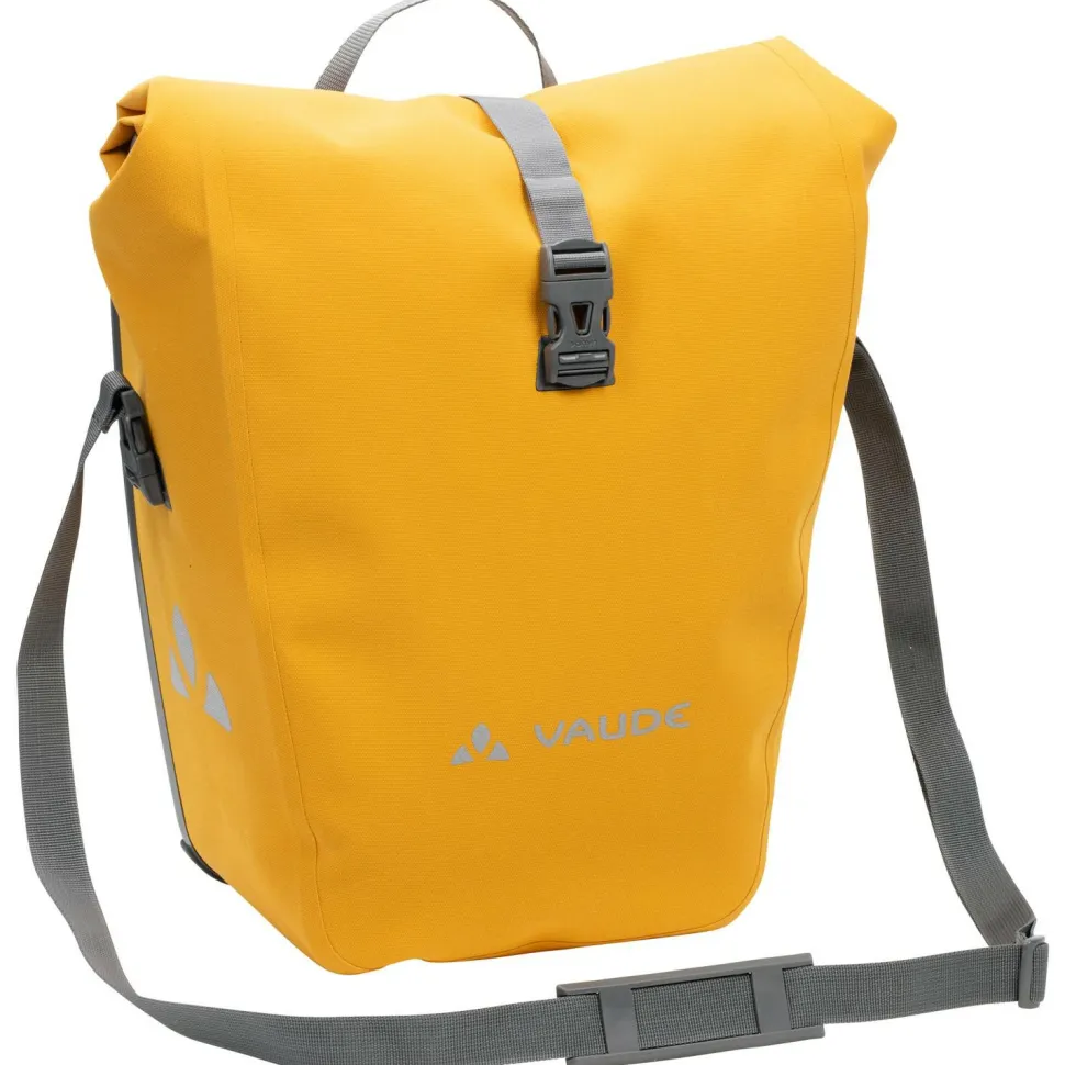 Ab gehts in die City mit der Aqua Back Deluxe Single von Vaude! Die wasserdichte Hinterradtasche ist aus einem robusten, dicht verarbeiteten Material mitsamt PFC-freier Eco Finish DWR gefertigt. Für zusätzlichen Nässeschutz sind die Nahtstellen allesamt dicht verschweißt. Das geräumige Hauptfach packt bis zu 24 Liter ein und lässt sich per wasserdichtem Rollverschluss ganz unkompliziert nach oben wie unten öffnen. Per abschließbarem QMR 2.0 Verschlusssystem kann die Tasche problemlos und schnell am Gepäckträger befestigt werden. Der abnehmbare Tragegurt kann auch als Spanngurt verwendet werden und ein reflektierender Logo-Druck verbessert die Sichtbarkeit.