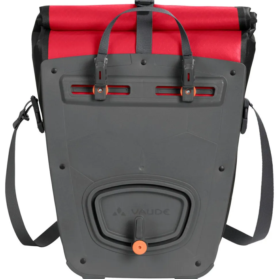 Mit der Vaude Aqua Back Plus Single Gepäckträgertasche ist man sowohl äußerst umweltfreundlich und nachhaltig als auch absolut funktional ausgerüstet auf einer Radtour unterwegs. Sie ist wasserdicht, sodass auch ein Regenschauer dem Inhalt nichts anhaben kann. Die Fahrradtasche beinhaltet ein geräumiges Hauptfach, eine herausnehmbare Innentasche sowie eine aufgeschweißte Fronttasche. Die Tasche überzeugt außerdem mit ihrer umweltfreundlichen, nachhaltigen Herstellung in Deutschland. Sie ist vollständig PVC- und PFC-frei.