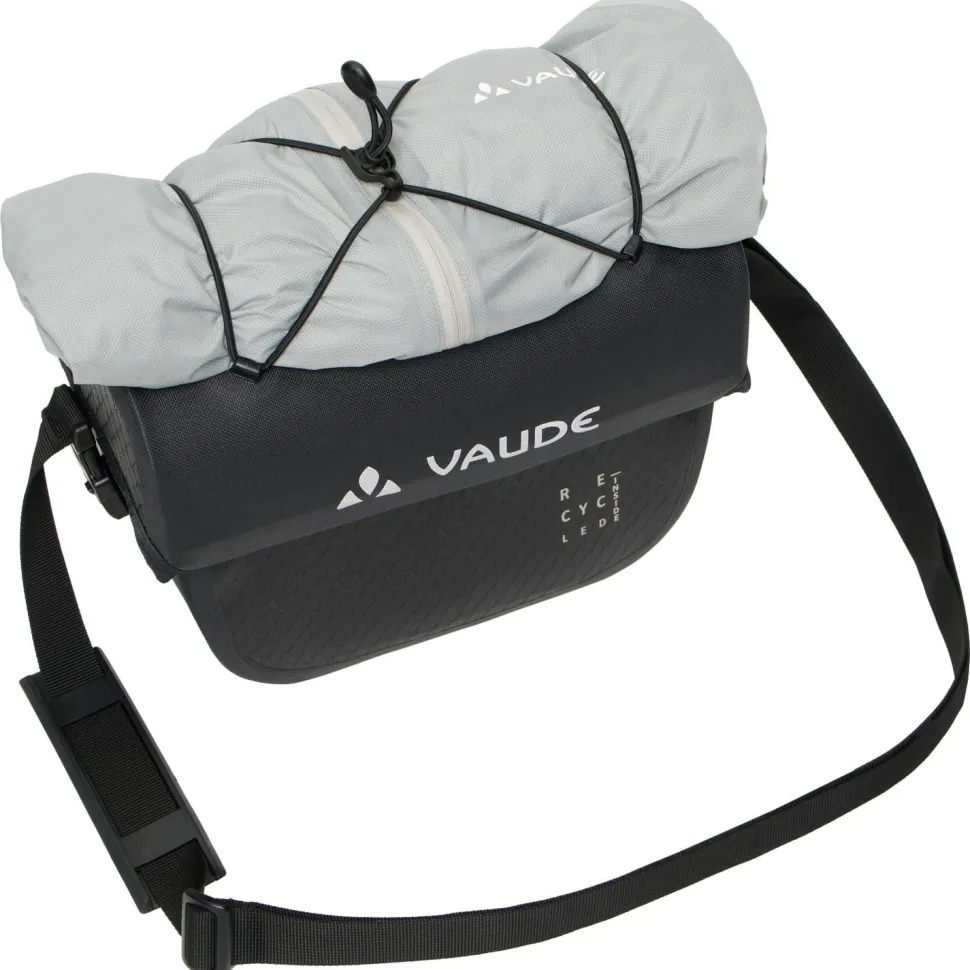 Die wasserdichte Aqua Box 4 Recycled Lenkertasche von Vaude kann Dich auf Deinen Bikepackingtouren und Radreisen begleiten. Mit ihren 6 Litern Stauraum bietet sie genügend Platz für alle Dinge, die Du schnell griffbereit haben möchtest. Sie ist mit einem herausnehmbaren Wertsachenfach ausgestattet. So hast Du Deine Wertsachen immer sicher bei Dir, auch wenn ihr einmal ein Päuschen in einer kleinen Stadt machen wollt.
