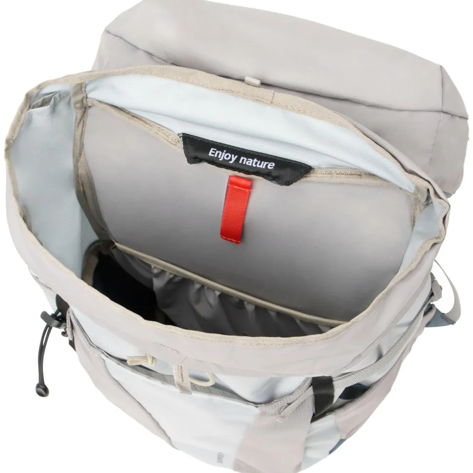 Beim Blick ins Innere des Brenta 24 zeigt eine praktische Fächeraufteilung mit schnellem Zugriff auf das Hauptfach. Dadurch ist das Gepäck jederzeit sinnvoll aufgeteilt und schnell griffbereit. Unter den praktischen Details finden sich unter anderem je ein Reißverschlussfach oben und unten im Deckel, eine elastische Fronttasche und seitliche Stretchtaschen mit Eingriff. Die integrierte Regenhülle befindet sich in einem separaten Fach und ist abnehmbar. Damit ist der Brenta 24 ein idealer Begleiter für Tages- und Wochenendtouren in den Bergen!