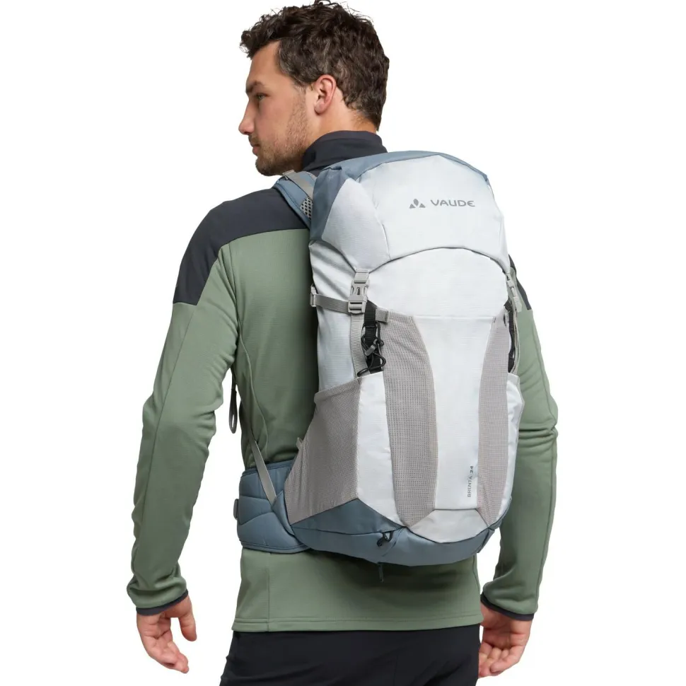 Der Brenta 24 von Vaude ist ein kompakter, sportlicher und top ausgestatteter Wanderrucksack mit ausgezeichneter Rückenbelüftung. Sein Tragesystem ist individuell anpassbar und besonders für längere Rücken geeignet. Die ErgoShape-Schultergurte verschaffen optimale Bewegungsfreiheit, während die gepolsterten Hüftflügel mit ihrem praktischen Reißverschluss-Täschchen für Entlastung sorgen. Der Aeroflex 3D 2.0 Netzrücken sorgt derweil für permanente Belüftung von allen vier Seiten und verhindert dadurch den Wärmestau genauso wie die Feuchtigkeitsentwicklung.