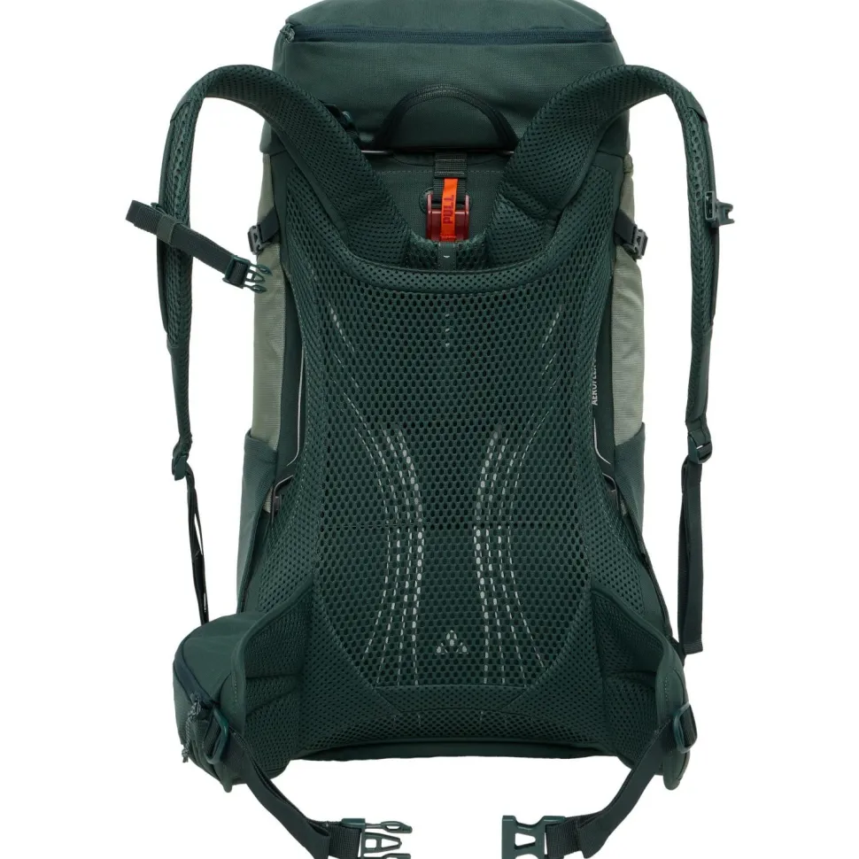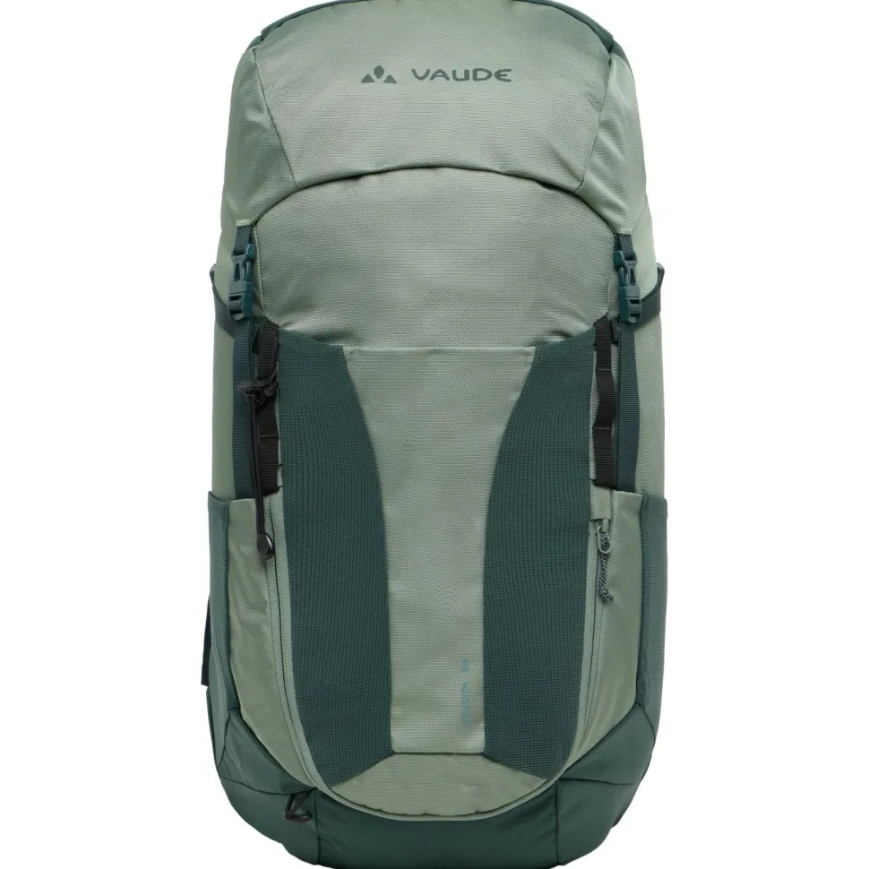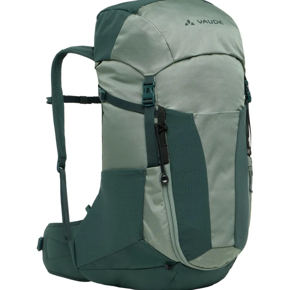 Der Brenta 30 von Vaude ist ein kompakter, sportlicher und top ausgestatteter Wanderrucksack mit ausgezeichneter Rückenbelüftung. Sein Tragesystem ist individuell anpassbar und besonders für längere Rücken geeignet. Die ErgoShape-Schultergurte verschaffen optimale Bewegungsfreiheit, während die gepolsterten Hüftflügel mit ihrem praktischen Reißverschluss-Täschchen für Entlastung sorgen. Der Aeroflex 3D 2.0 Netzrücken sorgt derweil für permanente Belüftung von allen vier Seiten und verhindert dadurch den Wärmestau genauso wie die Feuchtigkeitsentwicklung.