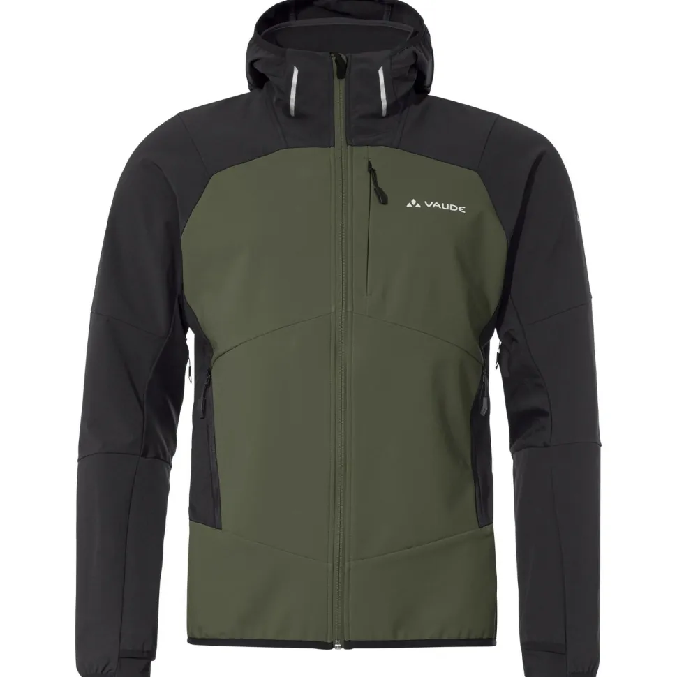 Die Larice Jacket V von Vaude ist eine sportlich geschnittene Skitouren-Softshelljacke für Herren. Am meisten Kälte verliert man im Winter über den Kopf. Die Kapuze ist angeschnitten und sitzt so perfekt am Kopf. Damit kann man sich die Mütze sparen. Kapuze, Armbündchen und Saum sind mit Lycra Band eingefasst, so verrutschen diese nicht. Wenn man zum Beispiel einen Rucksack trägt der sich etwas auf dem Rücken bewegt, schiebt sich die Jacke nicht unangenehm im Rücken zusammen, sondern bleibt gerade liegen und hält alles warm. Der Reißverschluss ist gewendet und mit Untertritt versehen, so ist er robust, leicht auf- und zu machbar und man kann sich nicht einklemmen. Für Wertgegenstände, LVS und Müsliriegel gibt es zwei Fronttaschen, sowie eine Brusttasche mit Reißverschluss. Auch wenn man einen Gurt anhat ist die Brusttasche gut erreichbar und somit perfekt für die Unterbringung des LVS, wenn Du ihn nicht in der Halterung tragen möchtest.
