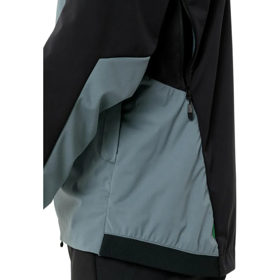 Mit zwei Fronttaschen und einer innenliegenden Sicherheitstasche hast Du alles Wichtige griffbereit und sicher verstaut. Die Unterarmventilation und die Belüftungsmöglichkeit über die Taschen helfen Dir, die Temperatur zu regulieren. Elastische Bündchen und der flexible Bund sorgen für einen guten Sitz, während die angeschnittene Kapuze zusätzlichen Schutz bietet. Reflektierende Elemente erhöhen Deine Sichtbarkeit bei Dämmerung und schlechtem Wetter.