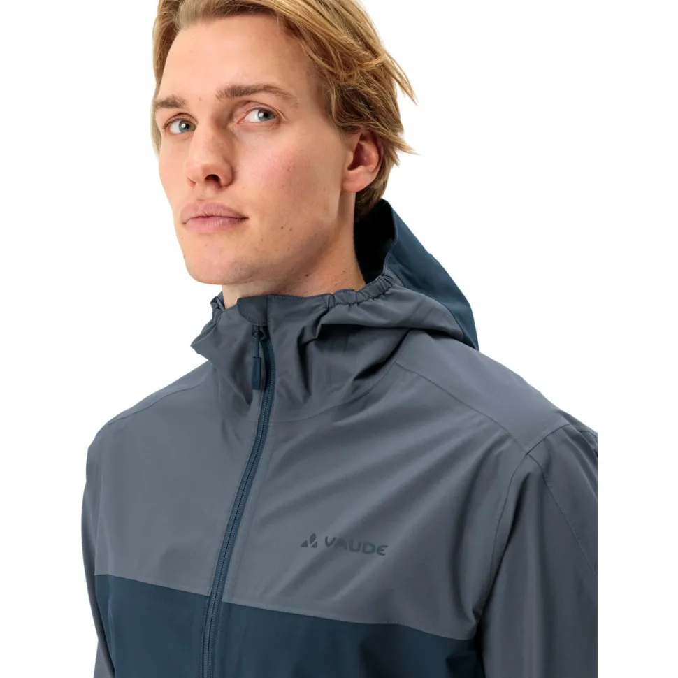 Die Moab Rain Jacket Fahrradjacke von Vaude ist aus wasserdichtem und windundurchlässigem Ceplex Active gefertigt und widersteht beim Radfahren einer Wassersäule von 10.000 mm. Zusätzlich ist ihre Oberfläche mit einer wasser- und schmutzabweisenden Eco Finish DWR Behandlung (Durable Water Repellent) geschützt. Die atmungsaktive Membran sorgt für einen effizienten Feuchtigkeitsaustausch bei sportlichen Aktivitäten, wird allerdings durch die Ventilationsöffnungen unter den Armen ergänzt. Sie sind mit wasserabweisenden Reißverschlüssen ausgestattet und garantieren angenehme Frischluftzufuhr bei anstrengenden Anstiegen. Die 2,5 Lagen Jacke von Vaude ist mit ihren ergonomisch vorgeformten Ärmeln und dem verlängerten Rücken perfekt auf die Bedürfnisse von Mountainbikern und Tourenfahrern zugeschnitten. Mit einem Kordelzug im Saum, einstellbaren Bündchen und einer weitenregulierbaren und aufrollbaren Kapuze kann die Moab Rain Jacket optimal auf die individuellen Bedürfnisse und die jeweilige Situation angepasst werden. Die umweltfreundlich hergestellte Fahrradjacke ist für verbesserte Sichtbarkeit mit reflektierenden Details ausgerüstet.