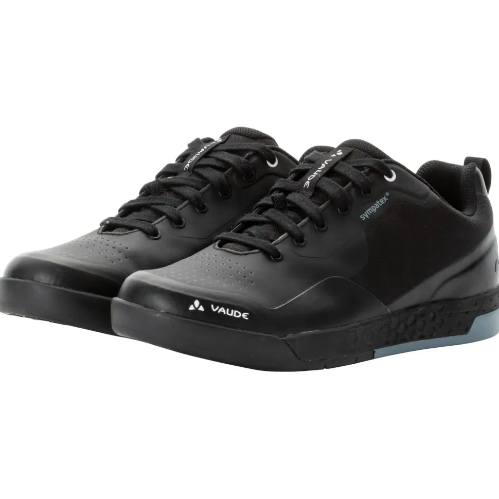 Vaude rüstet die Moab Sympatex Radschuhe mit einer integrierten Sympatex Membran aus, die die Schuhe besonders wasserdicht und wetterfest macht. Dabei sorgt ein atmungsaktives und feuchtigkeitsregulierendes Innenfutter und robuste TPU-Verstärkungen für zusätzlichen Tragekomfort. Die wasserdichten MTB-Schuhe sind mit einer Vaude AM Flat Sohle für Flat-Pedals ausgestattet und verfügen über eine SUPtraction Flat Gummimischung mit flexiblem V-Flow Stabilitätsindex 3. Außerdem dämpfen eine EVA Zwischensohle und eine anatomisch geformte Einlegesohle in den wetterfesten Moab STX Schuhen. Mit praktischer Schnürung, moderat gepolsterter Zunge und Anziehschlaufen im Fersenbereich komplettiert Vaude die funktionellen Radschuhe für Touren und Trails bei Regen, Matsch und Nässe.