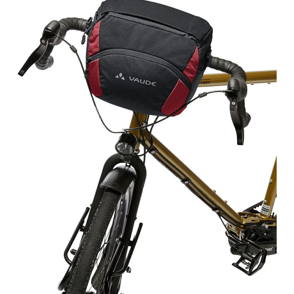Per Klickfix Befestigungssystem kann die OnTour Box L Lenkertasche von Vaude sicher und bequem am Fahrradlenker fixiert werden. Die robuste Tasche bietet 6 Liter Stauraum und lässt sich mit dem abnehmbaren Schultergurt auch im Alltag sehr vielseitig einsetzen. Neben dem großen Hauptfach verfügt die OnTour Box L über ein praktisches Deckelfach und eine extra Fronttasche. Dank PU-Beschichtung, Eco Finish Oberflächenbehandlung und integrierter Regenhülle ist die Vaude Lenkertasche auch für Radtouren bei Nässe und Staub bestens ausgerüstet.