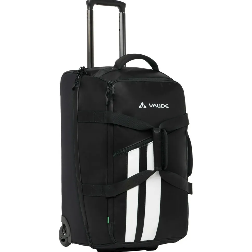 Die bringt richtig viel Gepäck unter und gibt sich vielseitig im Transport: ob Urlaubsreise oder Wochenendtrip, die Rotuma 65 kommt mit!Die Reisetasche aus robustem und dank PFC-freier ECO Finish DWR wasserabweisendem Obermaterial kommt mit einem in der Mitte aufklappbaren Hauptfach mit 65 Litern Stauraum und Zwischenboden. Ein zusätzliches Zip-Fach für Kleinigkeiten ist an der Vorderseite verarbeitet. Das leichtgängige, austauschbare Rollensystem und der ausziehbare Teleskopgriff erlauben einen unkomplizierten Transport als Trolley-Koffer. Per Schultergurt und Tragegriff kann die Rotuma 65 aber auch als große Reisetasche verwendet werden.