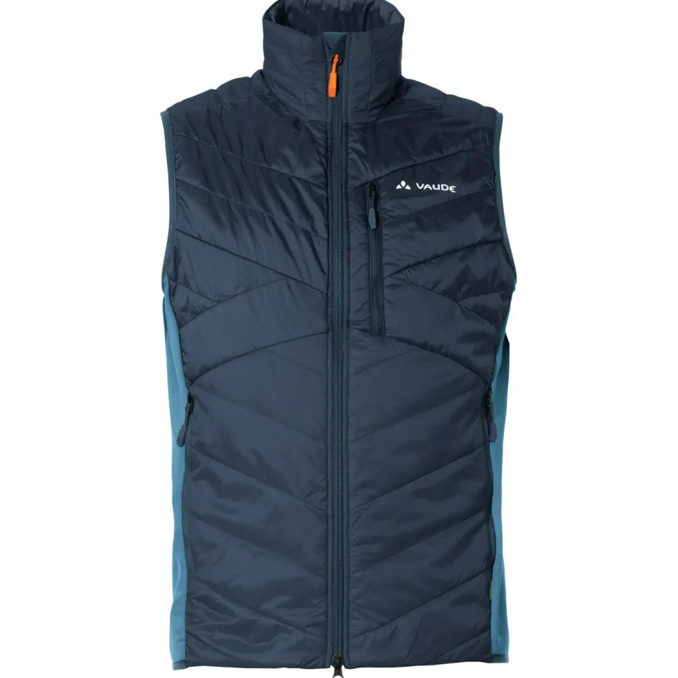 Die Sesvenna Vest IV von Vaude ist der ideale Begleiter, der die Körpermitte mit Wärme versorgt, egal, ob als Midlayer oder Außenschicht. Und natürlich eignet sich diese schön warme Isolationsweste auch nicht nur für Skitouren, sondern leistet auch bei Wandern, Trekking oder einfach generell in kaltem Wetter gute Dienste. Allerdings, der Schnitt ist eher körpernah und richtet sich damit insgesamt doch eher an sportlich orientierte Nutzer. Die Weste ist wasserabweisend und warm dank PrimaLoft-Isolierung. Für eine bestmögliche Bewegungsfreiheit, und um gleichzeitig ein mögliches Überhitzen zu verhindern sind extrem atmungsaktive, elastische Einsätze eingearbeitet. Diese sorgen für einen guten Tragekomfort, der durch die elastischen eingefassten Armlöcher und den elastischen Saum nochmals verstärkt werden. Eine Brust- und zwei Fronttasche, die jeweils mit Reißverschlüssen gesichert sind, bieten genügend Stauraum für Dinge, die unbedingt dabei sein müssen.