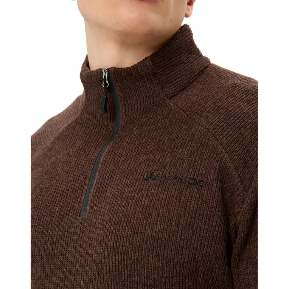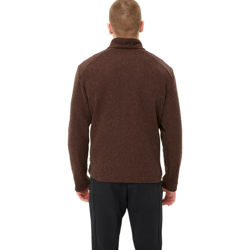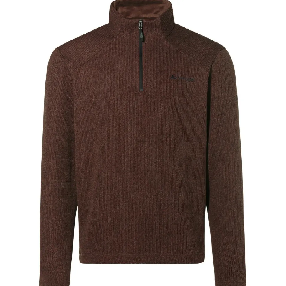 Lässig und gediegen unterwegs: der Tesero Pullover II von Vaude! Der praktische Fleecepullover überzeugt mit seinem komfortablen und funktionellen Hauptmaterial, das vollständig aus recyceltem Polyester hergestellt ist. Es bietet ein angenehmes Tragegefühl mit reichlich Wärme, ohne zu viel Feuchtigkeit aufzunehmen. Deshalb ist der Tesero Pullover nicht nur für den Alltag und die Freizeit geeignet, sondern auch zum Wandern und Reisen.