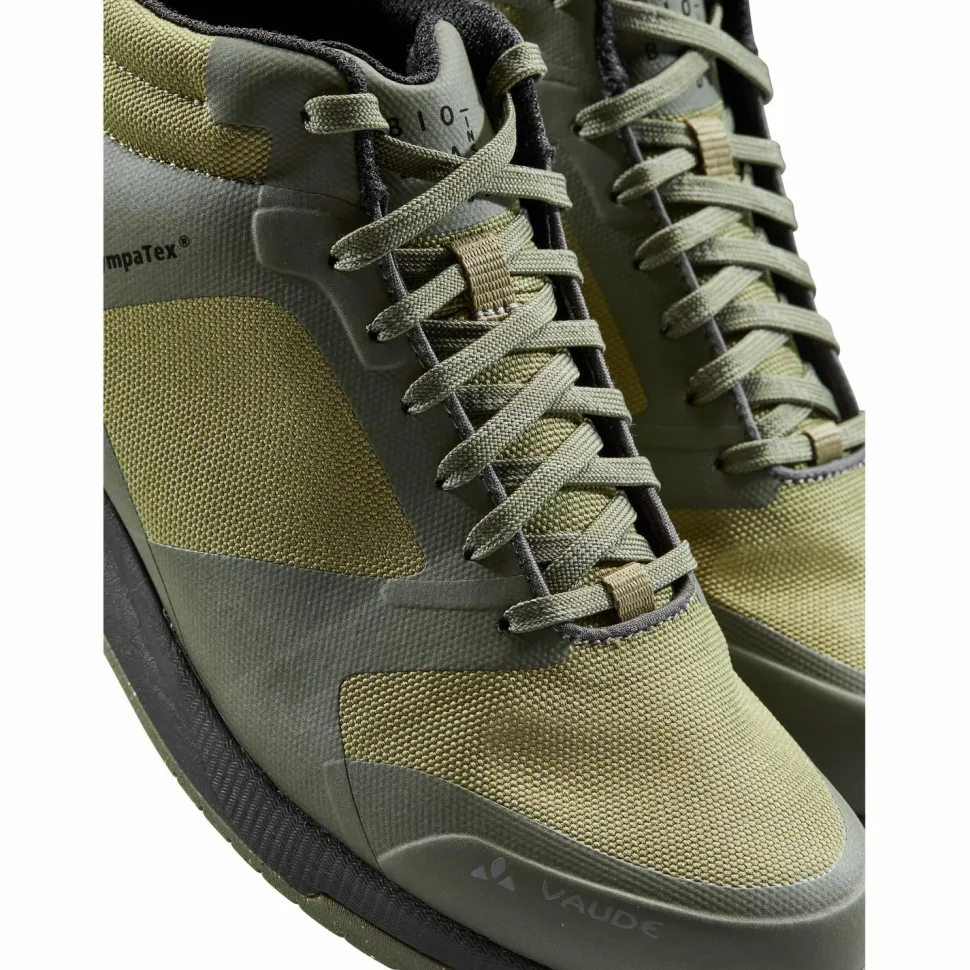 Den TVL Asfalt Dualflex Winter STX von Vaude sollten sich alle Mountainbiker, Fahrradpendler und Bikepacker mal anschauen, die ganzjährig radeln und dabei keine Click-Pedale nutzen wollen. Denn der Schuh kommt mit der perfekten Ausstattung für ungemütliche Wetterphänomene: er ist, dank SympaTex-Membran, wasser- und winddicht, dabei aber dennoch atmungsaktiv. Die Füße bleiben also trocken und sind vor kalter Zugluft geschützt. Damit sie aber auch bei wirklich niedrigen Temperaturen warm bleiben, ist der TVL Asfalt Dualflex Winter STX auch noch mit einem wärmenden PrimaLoft-Innenfutter ausgestattet! Und weil das unerschrockene Winterradler-Publikum gerne auch länger im Sattel sitzt, weist der Schuh auch einen hohen Tragekomfort auf. Dazu trägt die anatomisch geformte, herausnehmbare Einlegesohle bei, aber auch die auf Powertransfer und Komfort ausgelegte Dualflex-Außensohle. Dem Anspruch an ressourcenschonendes Wirtschaften seitens Vaudes Rechnung tragend weist der Schuh einen hohen Anteil an recyceltem Material auf.