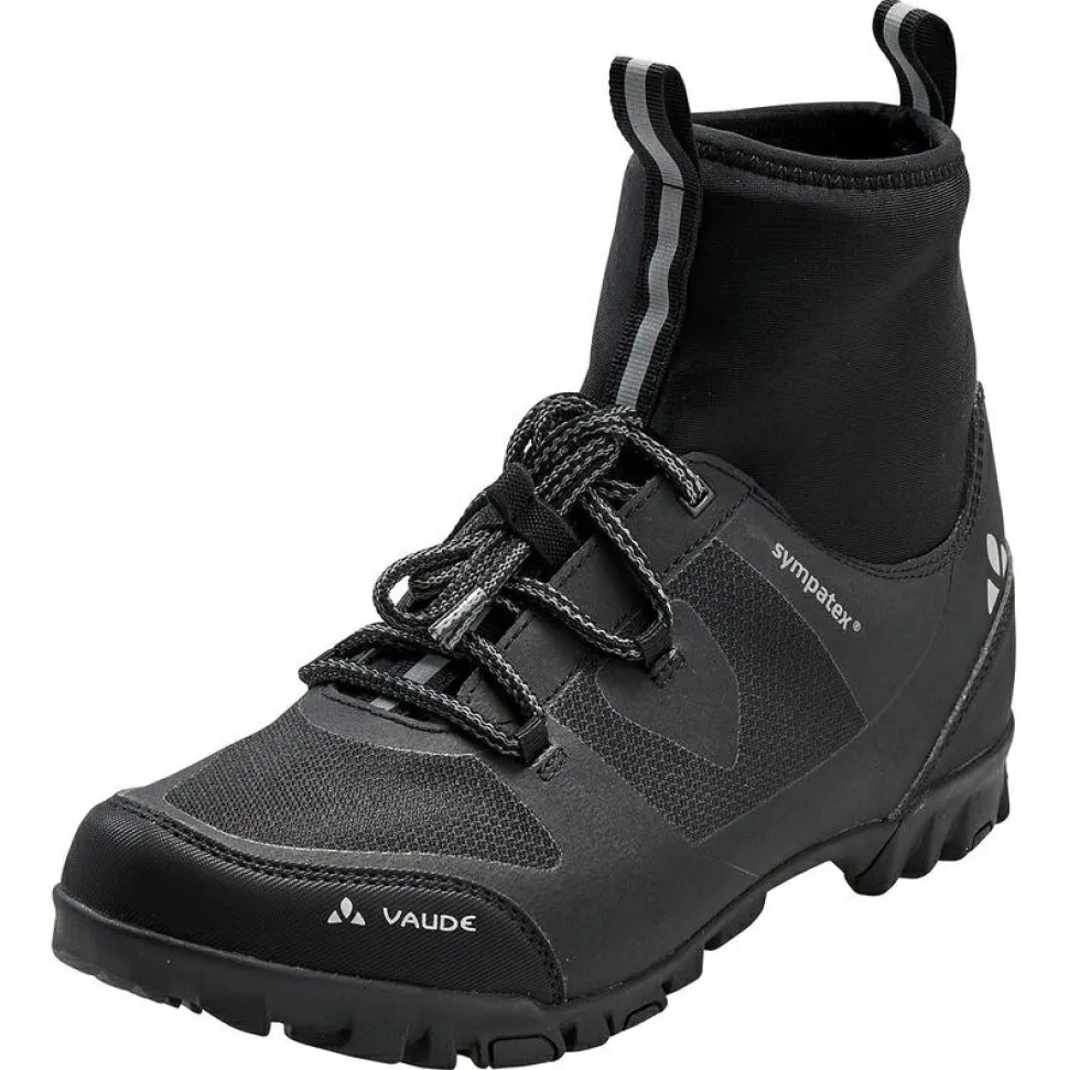 Die eierlegende Wollmilchsau als solche ist zwar ein Mythos, aber für einzelne Outdoor-Anwendungen gibt es durchaus umfassend sinnhafte Lösungen! Zum Beispiel den TVL Pavei Mid Winter STX Fahrradschuh von Vaude, der sich an Gravelbiker und Bikepacker richtet, die das ganze Jahr ihrem Sport und Hobby nachgehen möchten. Denn dieser Schuh ist wasserdicht, winddicht, dabei aber trotzdem atmungsaktiv, und: warm! Der TVL Pavei Mid Winter STX bringt also alles mit, was er für das vorgesehene Einsatzgebiet bieten muss. Außerdem ist die mittelfeste, durchgängig nylonverstärkte Außensohle mit allen gängigen MTB-Click-Systemen kompatibel und kommt mit einer schraubbaren Gummiabdeckung.