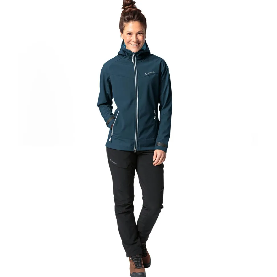 In Deinem Rucksack hat die Softshelljacke Women’s All Year Elope Softshell Jacket von Vaude immer gut Platz! Ihr Material ist wasserabweisend und winddicht, also ein zuverlässiger Wetterschutz. Belüftungsreißverschlüsse unter den Armen sorgen für die nötige Frischluftzufuhr bei schweißtreibenden Aktivitäten. Dank vorgeformter Ärmel hast Du eine gute Bewegungsfreiheit. Die Kapuze lässt sich einfach einstellen. Die angeraute Innenseite sorgt für einen angenehmen Wärmekomfort. Verstellbare Bündchen und ein verstellbarer Saum optimieren die Passform. Der Kinnschutz verhindert Hautirritationen. Für Kleinigkeiten hast Du drei Taschen. Die Jacke punktet mit einem geringen Packmaß, hat also gut im Rucksack Platz!