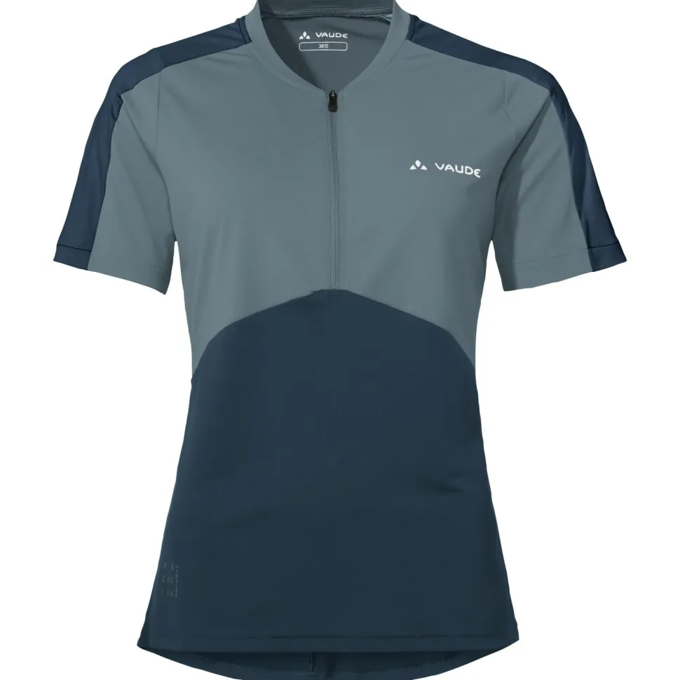 Das Women’s Altissimo Shirt II von Vaude trocknet schnell, ist angenehm atmungsaktiv und sorgt für hervorragende Bewegungsfreiheit beim Mountainbiken. Vaude stattet das Radtrikot im Colorblock Design mit kurzem Stehkragen und Frontreißverschluss in halber Länge aus.