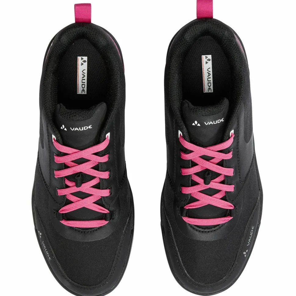 Robuste Schuhe für den Mountainbike Einsatz gesucht? Dann kommen die Women’s AM Moab syn. von Vaude gerade recht!Die Fahrradschuhe sind aus einem widerstandsfähigen, stark wasserabweisenden Canvas Oberschuh-Material gefertigt und werden durch externe Zehen- und Fersenschutzkappen nochmals verstärkt. Das Innenfutter ist aus teilweise recyceltem Polyester und sorgt zusammen mit der herausnehmbaren, ergonomisch geformten Einlegesohle für angenehmen Komfort auch auf langen Touren. Die Vaude AM Flat Sohle aus der abriebfesten SUPtraction Gummimischung ist mit ihrer erhöhten Auflagefläche auf den Flatpedal-Einsatz ausgelegt. Im Pedalbereich sorgt das hexagonförmige Profil für idealen Grip und auf dem Boden für sicheren Tritt auch in schwierigem Gelände. Eine dämpfende EVA-Mittelsohle dient als stoßabsorbierendes Element und sorgt für gelenkschonende Touren.
