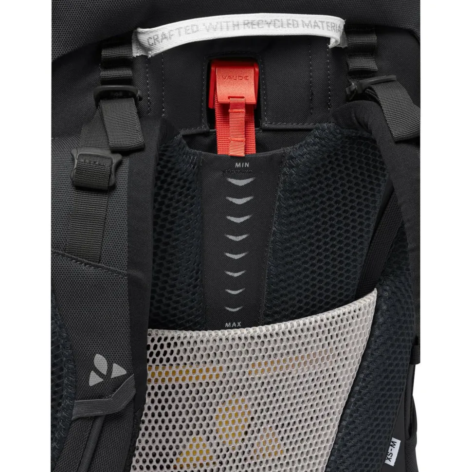 Sein Material ist robust, langlebig und wasserabweisend. Viel Stauraum bietet das große Hauptfach. Darauf hast Du über den verstellbaren Deckel und über die Front Zugriff. Zusätzliche Taschen am Hüftgurt, im Deckel und ein Stretchfach optimieren den Stauraum. Das Tragesystem ist ideal an die Anatomie kleinerer Personen angepasst. Der Rücken lässt sich individuell einstellen. Die Comfort Space dient der Entlastung des unteren Rückenbereichs. Ein komfortabler Partner für Trekkingtouren!